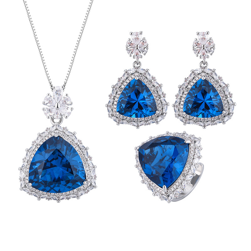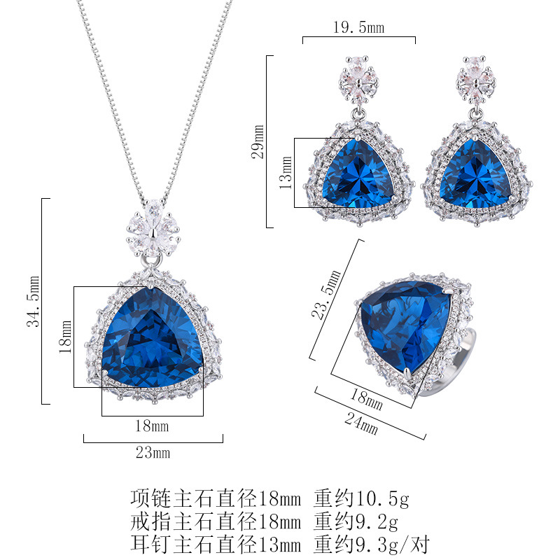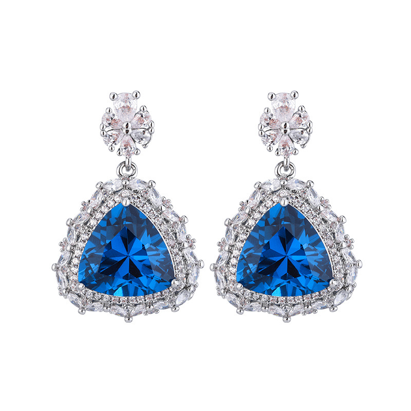 El otoño y el invierno Nueva Zhuang Sheng joyas de cobre de fondo chapado en oro de simulación azul de cristal puntiagudo traje avanzado 17*17-12*12