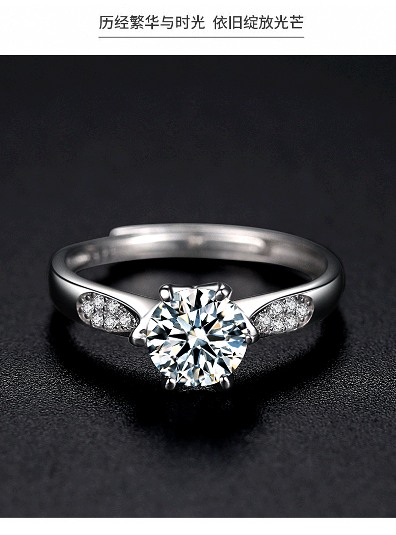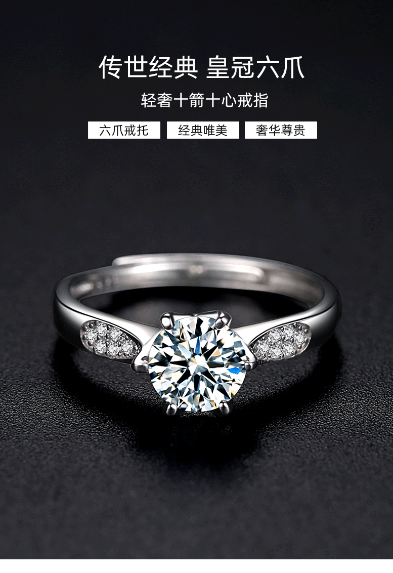 S925 anillo de diamantes de plata esterlina estilo japonés y coreano 1 quilate diez flechas diez corazón anillo femenino geométrico redondo con incrustaciones de circón fila anillo de pares de diamantes