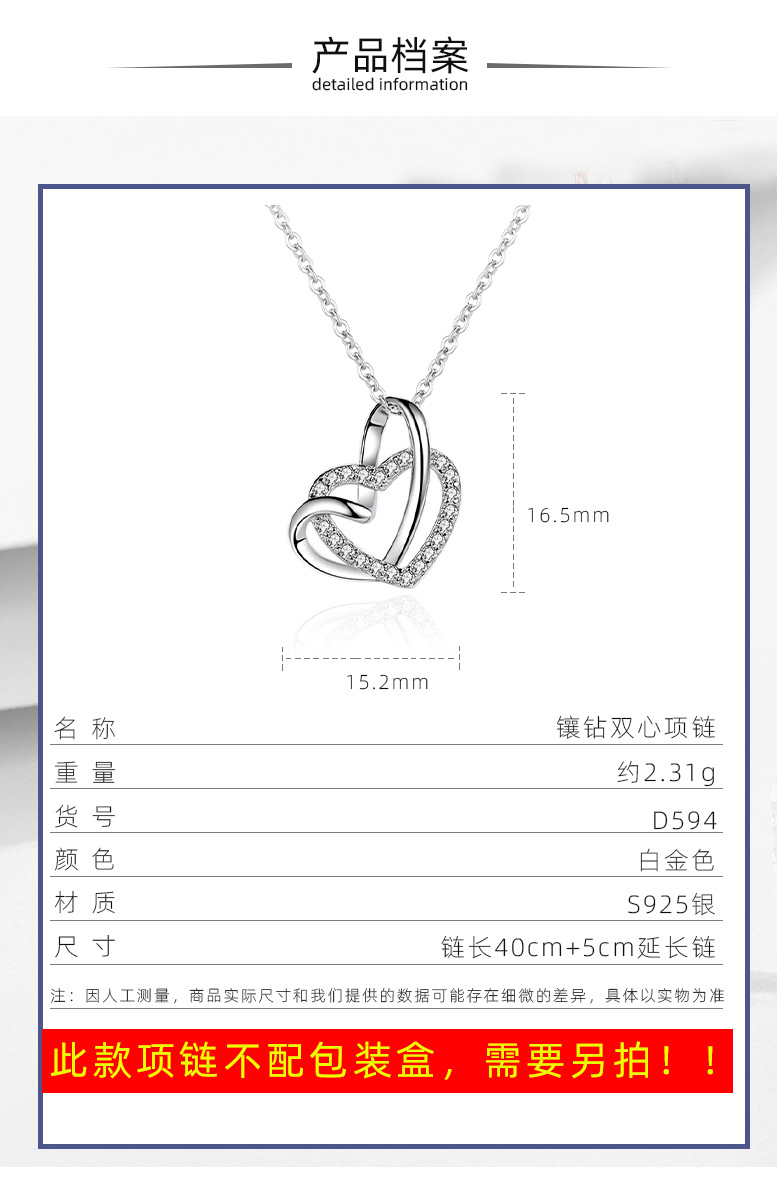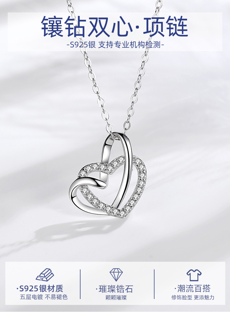 S925 plata doble corazón colgante collar clavícula elegante dama corazón a corazón colgante diamante en forma de corazón collar de comercio exterior