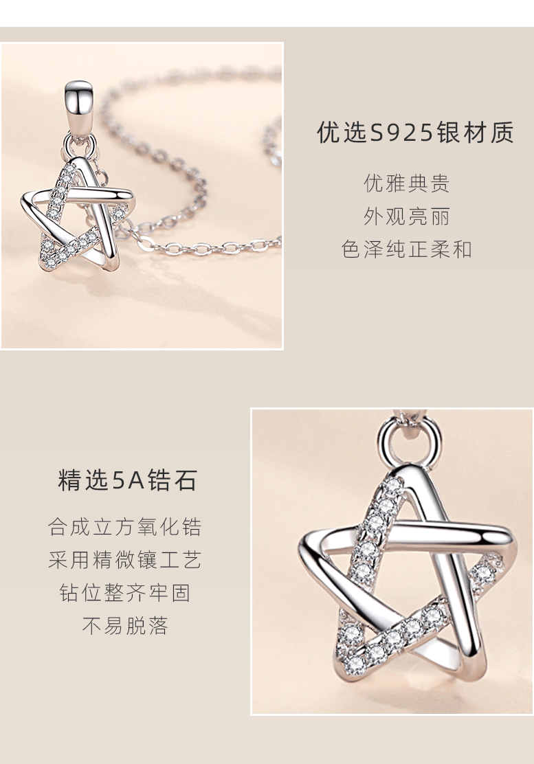 Collar de Estrella de plata esterlina S925 Plata estilo japonés y coreano diamante estrella de cinco puntas moda estilo coreano collar ins estilo simple