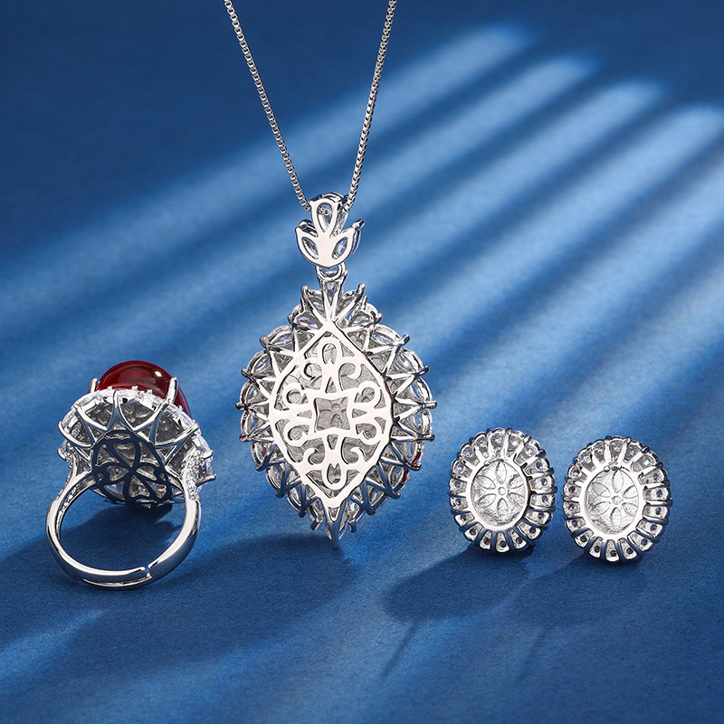 Zhuang Sheng joyería europea y americana simulación paloma sangre roja corindón superficie lisa luz traje de lujo colgante 18*20 anillo 13*18