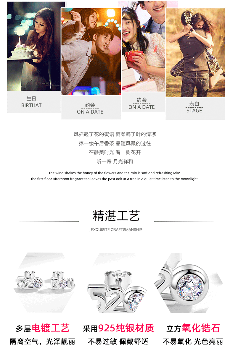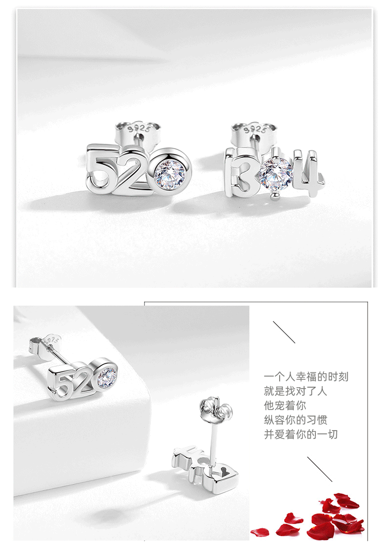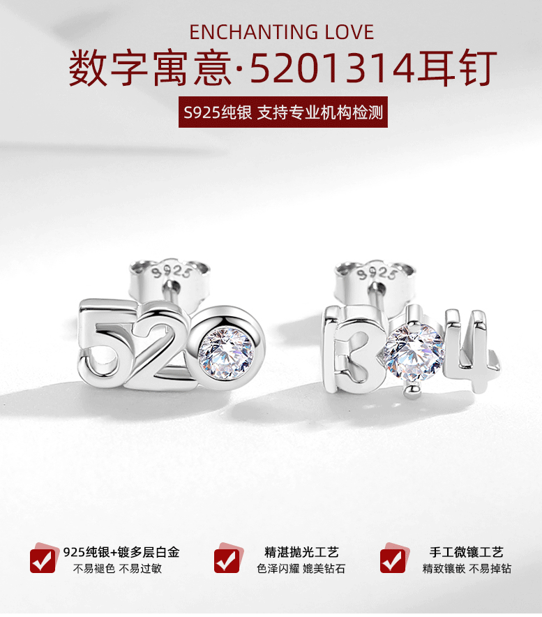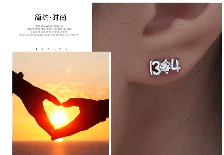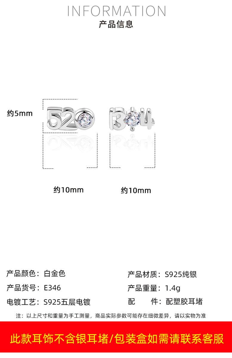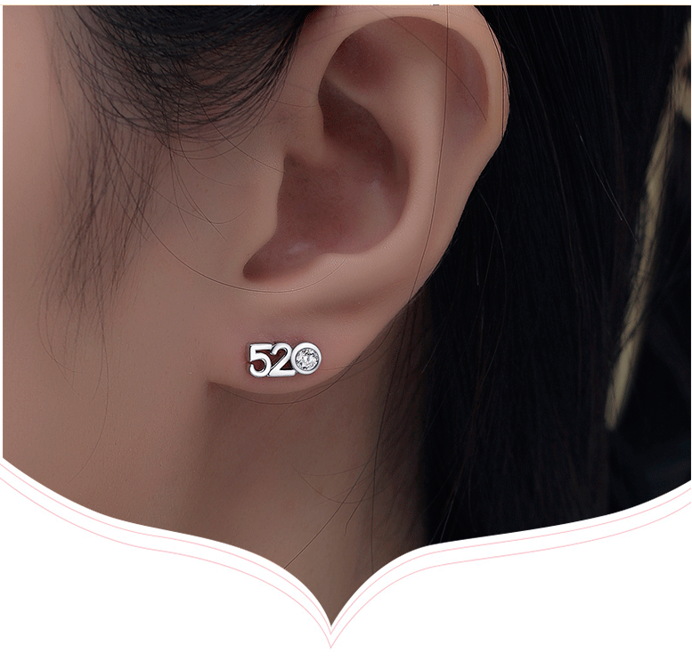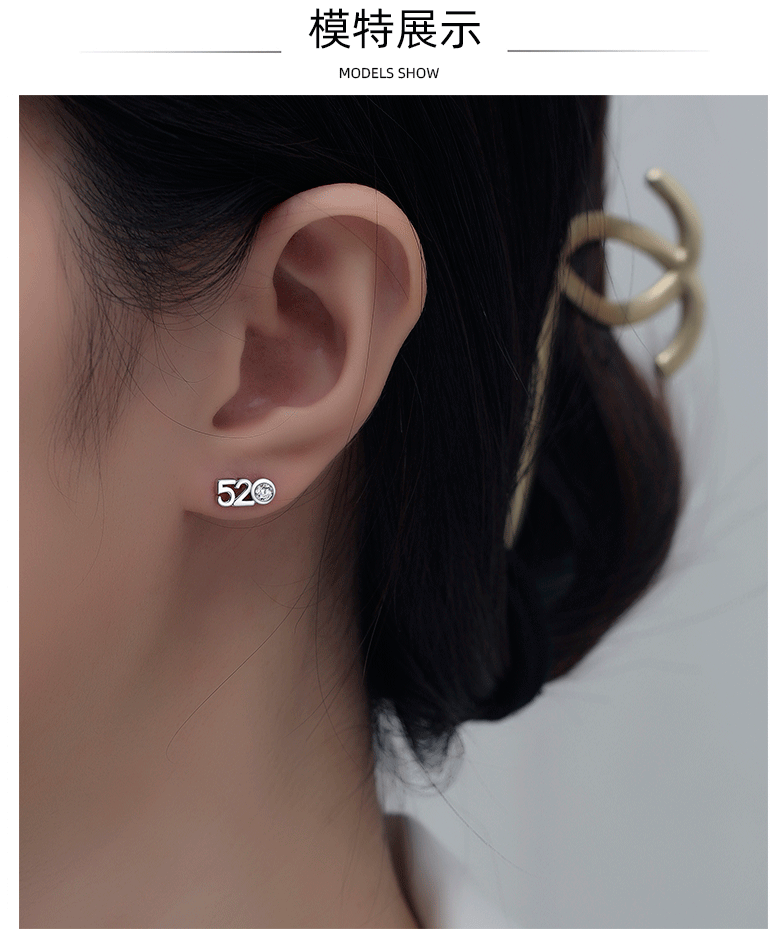 Pendientes de plata de ley s925 520 pendientes nuevos 1314 pendientes creativos digitales Pendientes de estilo coreano de moda simple para mujer incrustada en diamantes