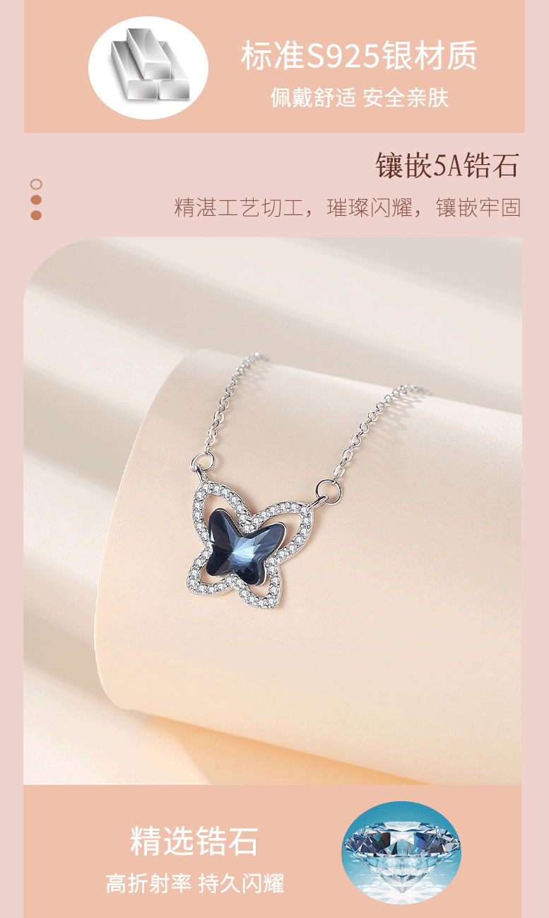 S925 Collar de plata esterlina Colgante de mariposa Cristal europeo y americano Cadena de clavícula simple y versátil Joyas de red para mujer