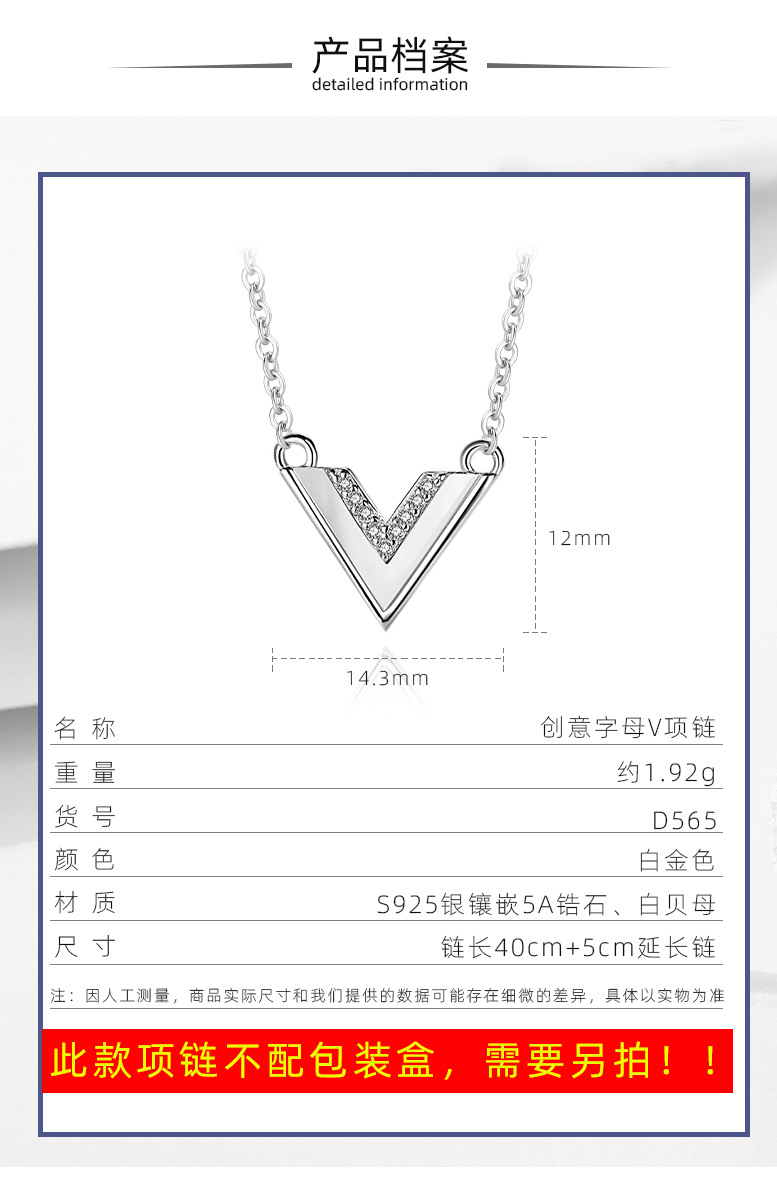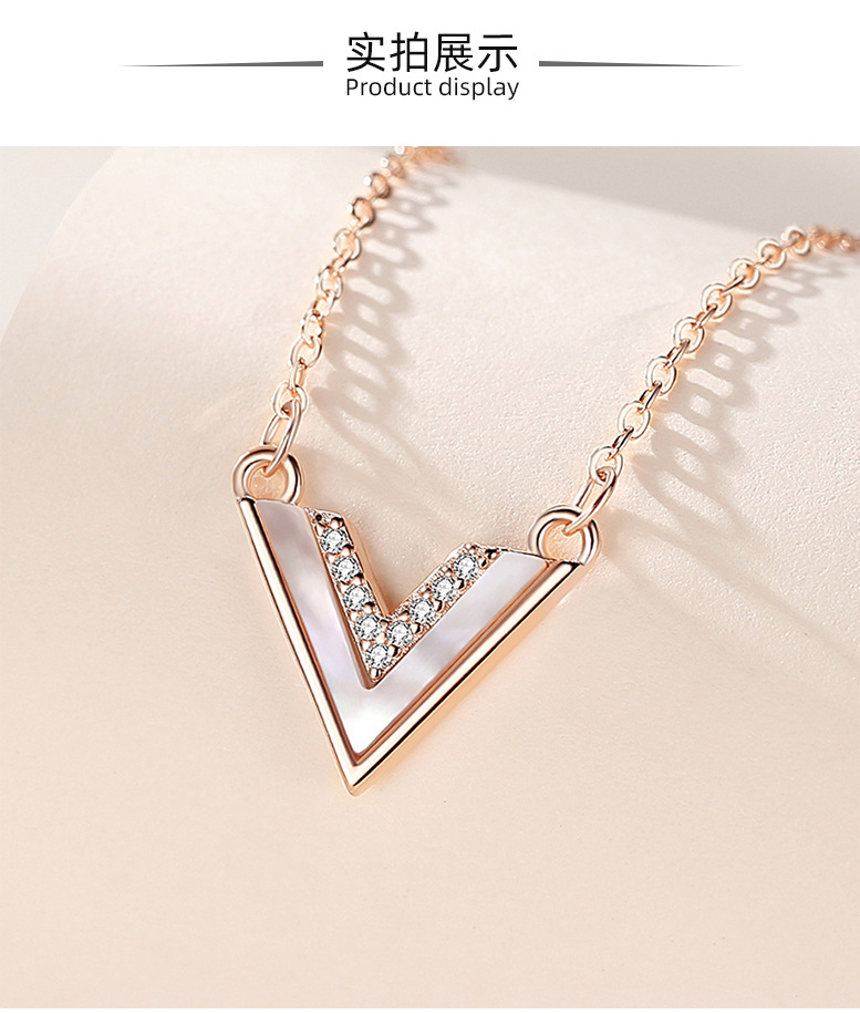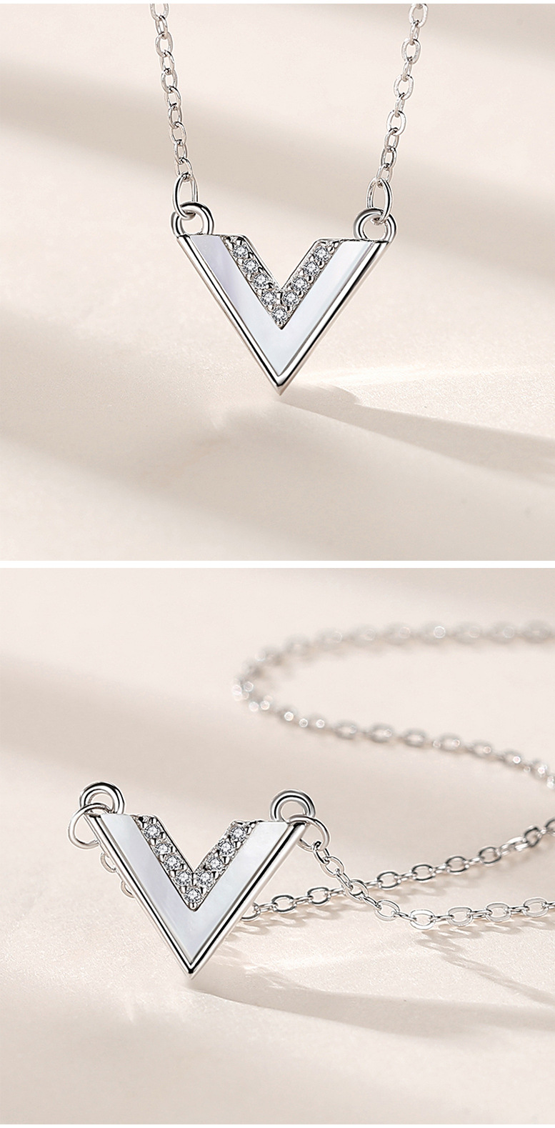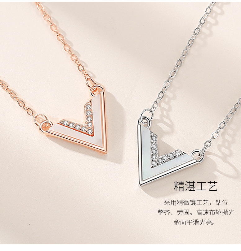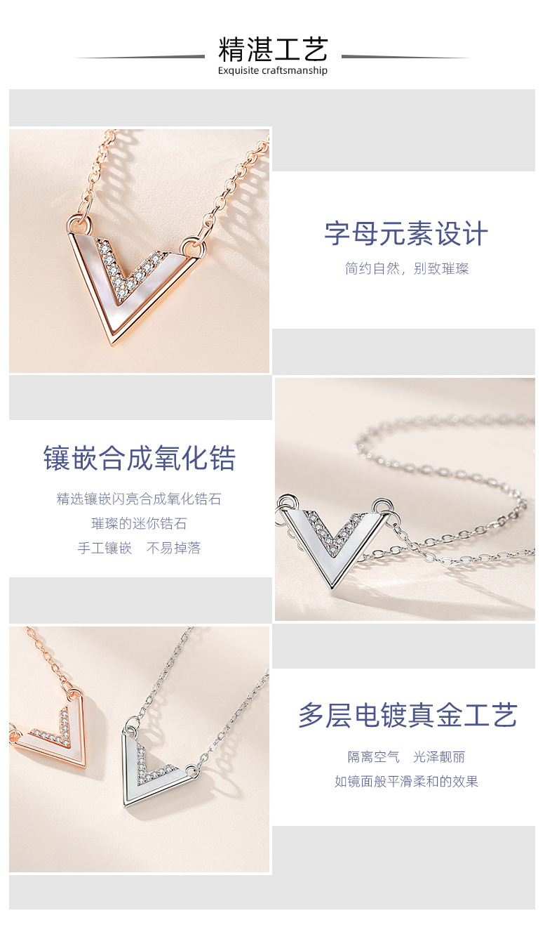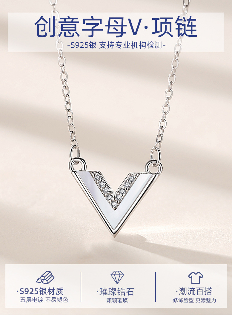 S925 plata esterlina letra V collar con diamantes de estilo europeo y americano simple moda temperamento transfronterizo clavícula cadena al por mayor
