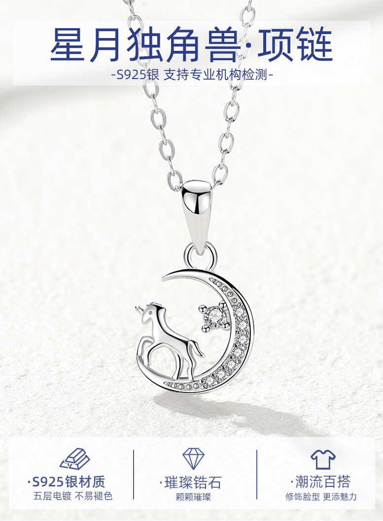 S925 unicornio collar de plata esterlina para las mujeres ins verano luz lujo nicho nueva clavícula cadena colgante regalo del Día San Valentín