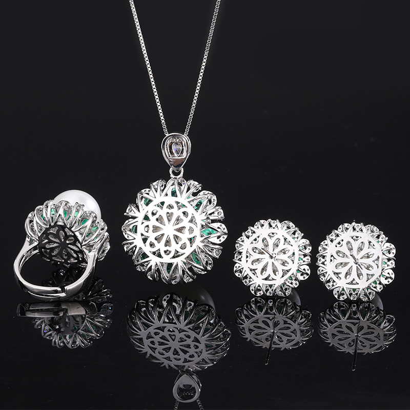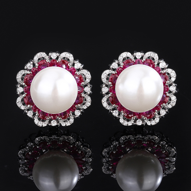 Zhuang Sheng joyería de cobre inferior chapado en oro de color de simulación tesoro con incrustaciones de perlas blancas flor traje femenino 16-14-12mm