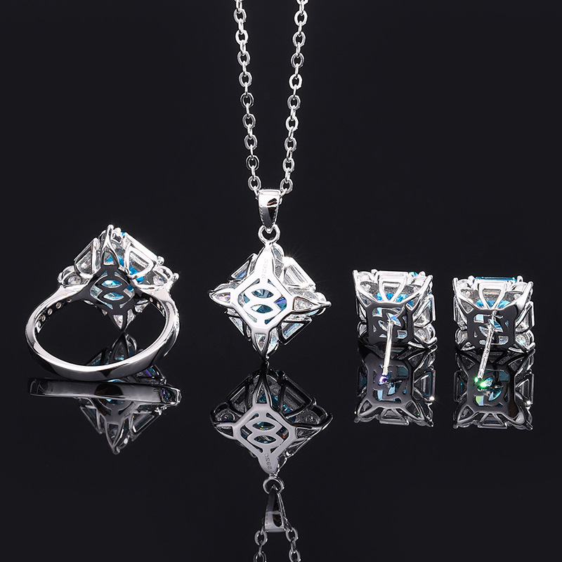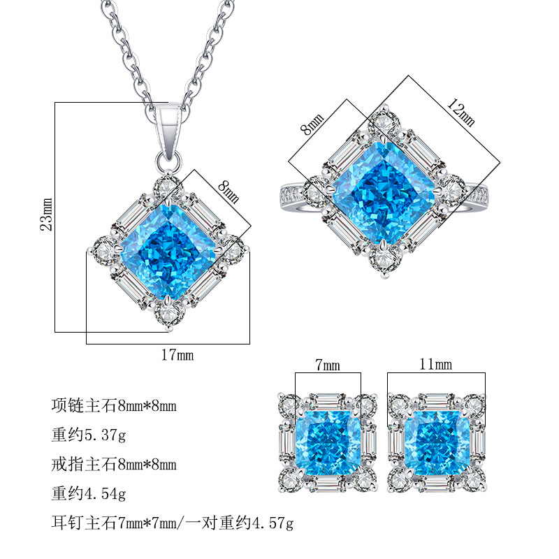Zhuang Sheng joyería S925 plata de alto carbono diamante aguamarina princesa cuadrado diamante traje mujer principal piedra 8*8-7*7