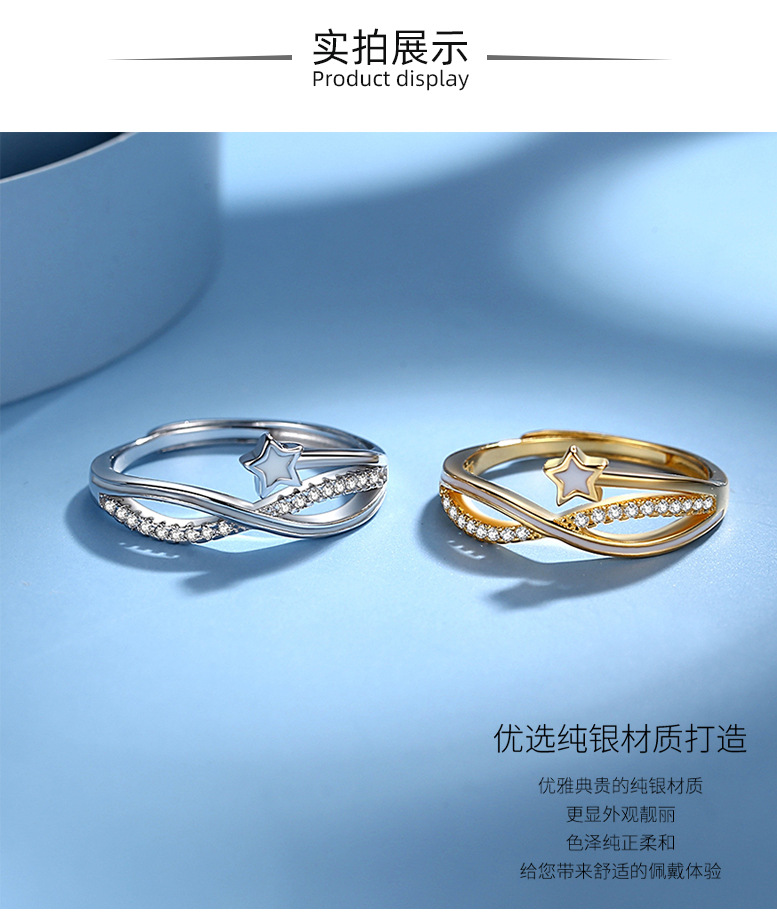 S925 plata esterlina de doble capa Star Line anillo de las mujeres Luz de lujo de moda Cruz fría diamante incrustado pequeña estrella anillo único