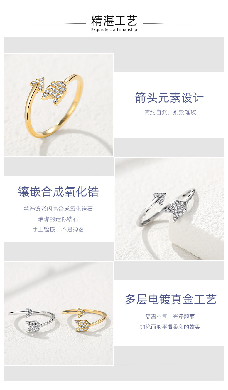 Anillo de flecha al por mayor anillo de diseño femenino transfronterizo S925 plata esterlina diamante completo Amor creativo flecha