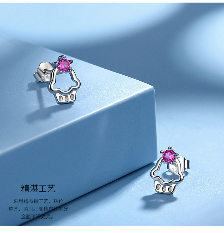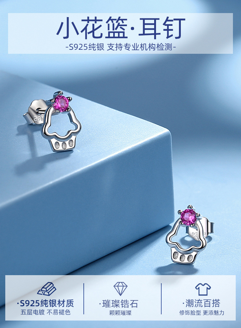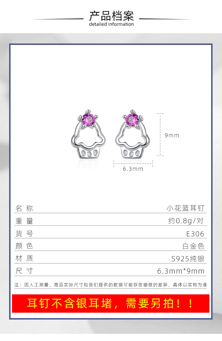 Lindo pequeña cesta de flores pendientes de plata esterlina de las mujeres S925 micro diamante-incrustado estilo japonés y coreano Red pendientes rojos creativo cesta de flores portátil