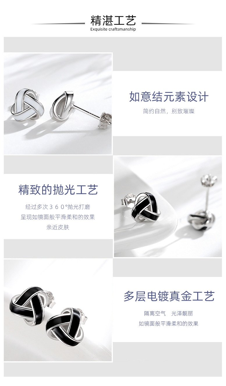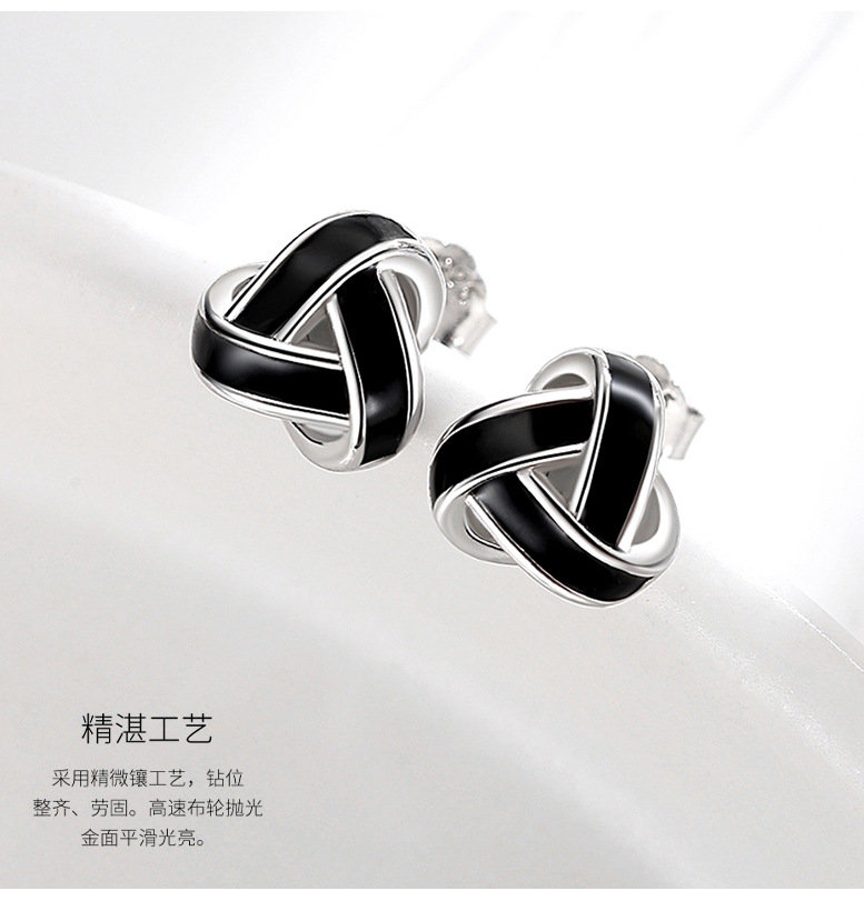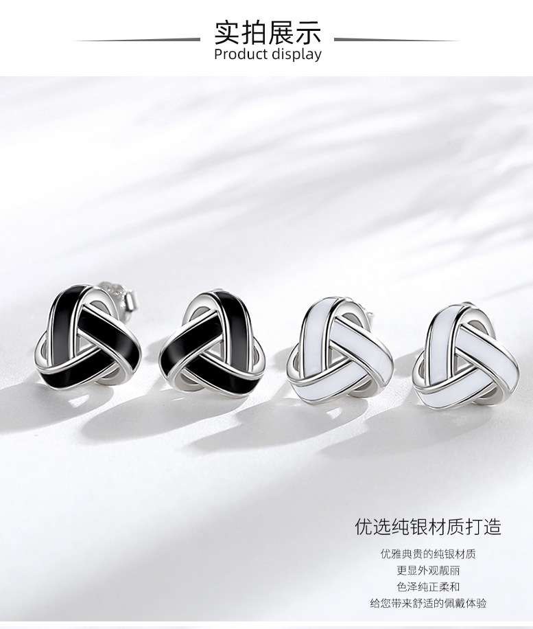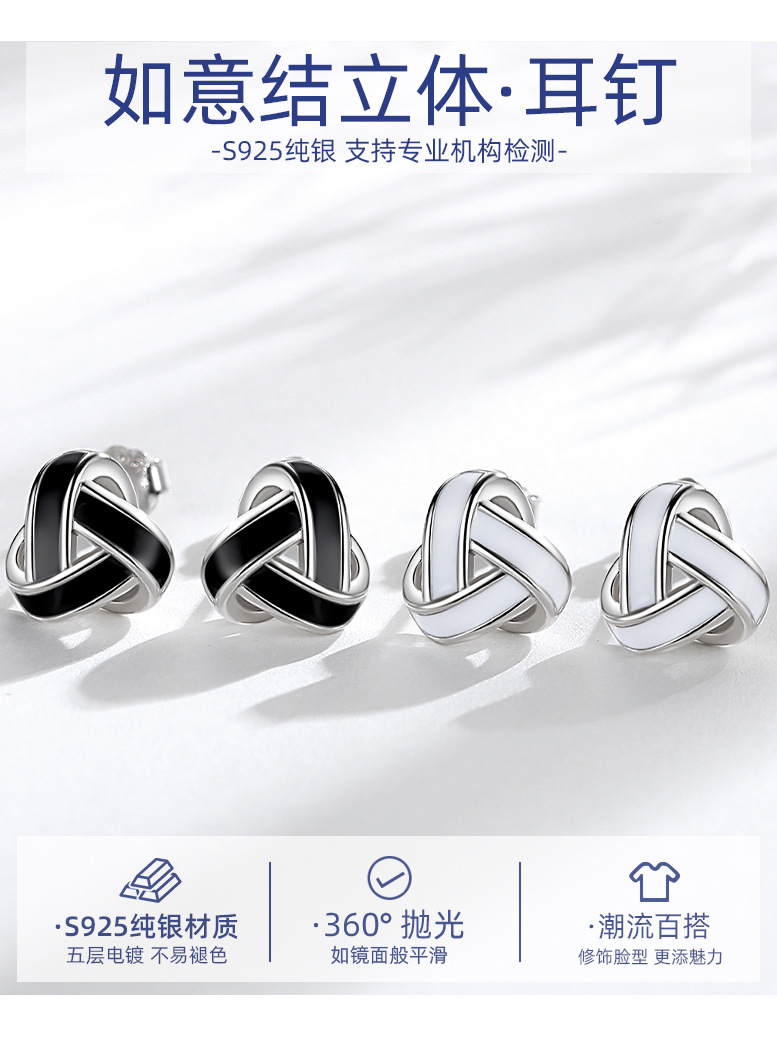 S925 plata esterlina geométrica tridimensional triángulo Stud pendientes hombres y mujeres estilo japonés y coreano moda entrelazada Ruyi nudo pendientes al por mayor