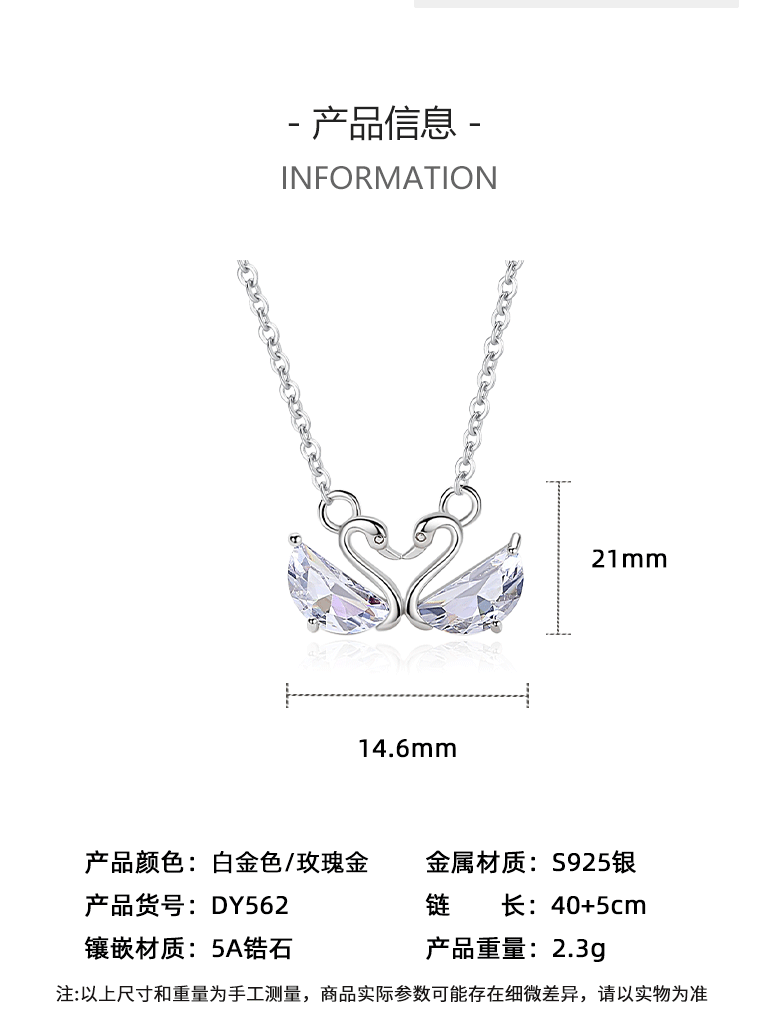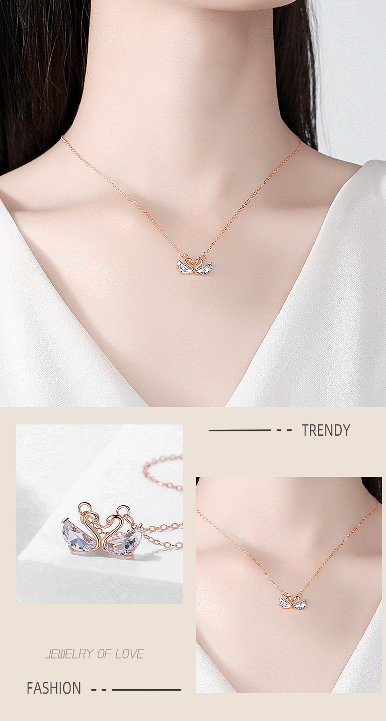 S925 plata diamante-incrustado Biyi doble collar de vuelo moda estilo coreano amor japonés y coreano estilo romántico Cisne clavícula cadena al por mayor