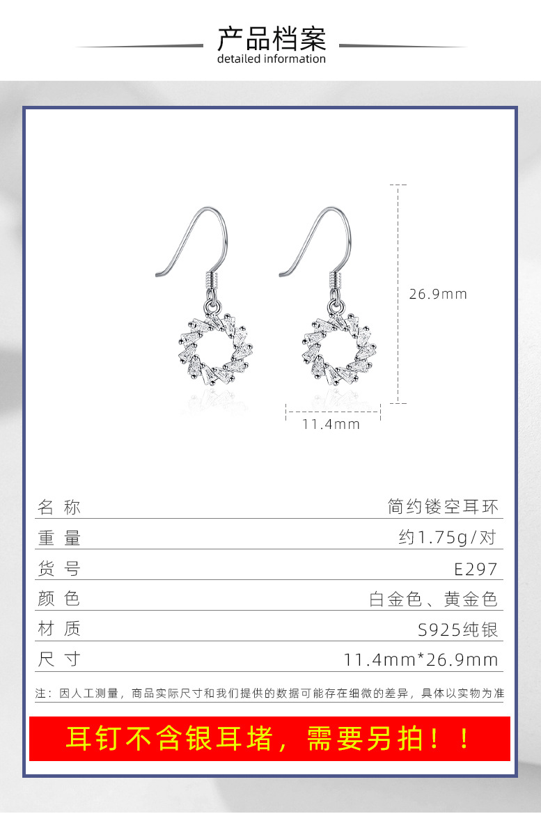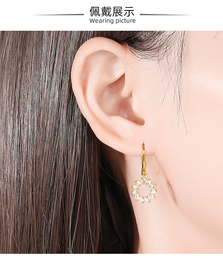 Estilo coreano plata esterlina S925 pendientes en forma de círculo con diamantes ins estilo pendientes brillantes estilo japonés y coreano pendientes largos