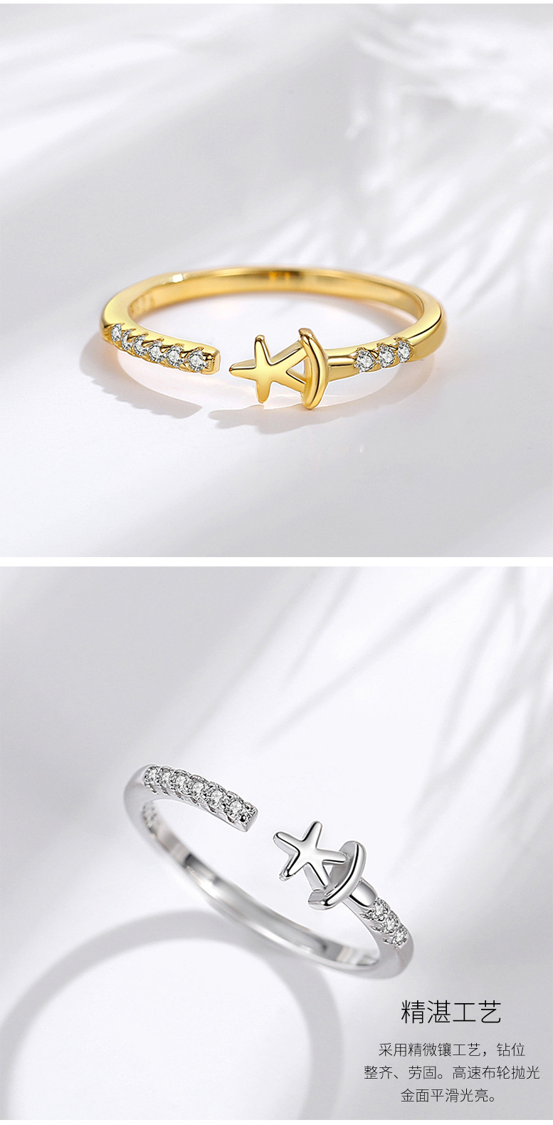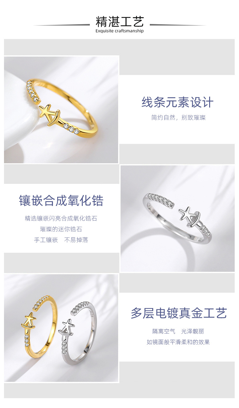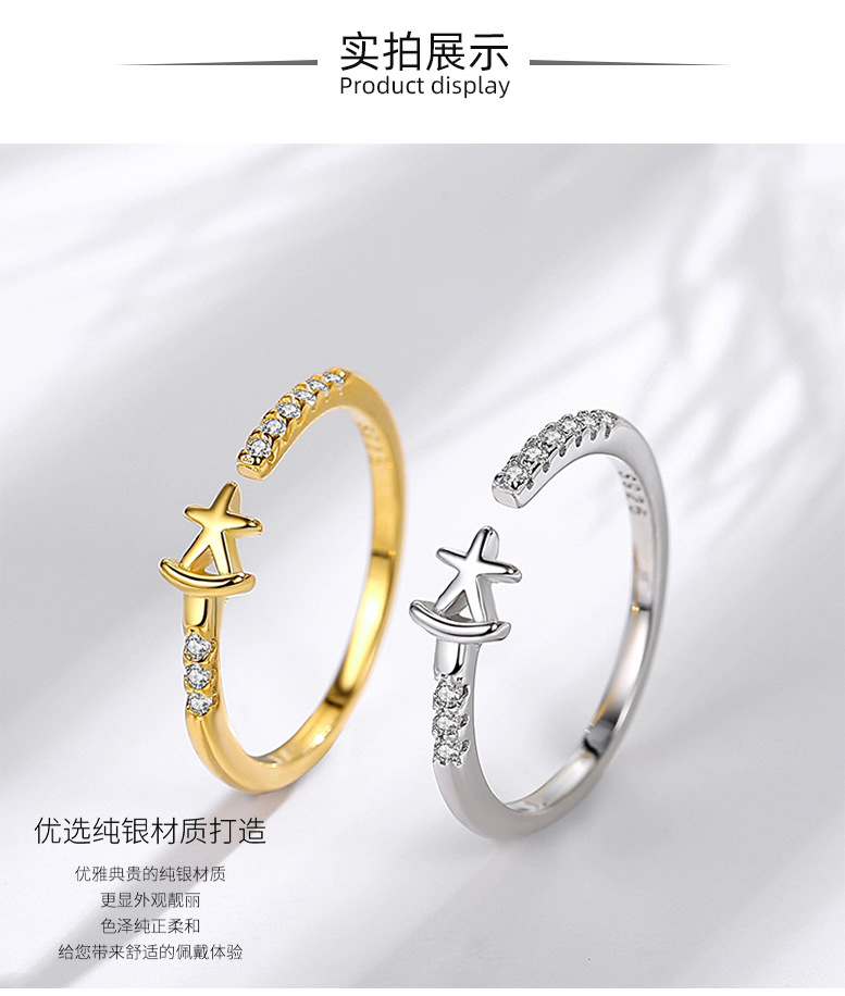 S925 Estrella de plata esterlina anillo femenino japonés y coreano diamante estrella de cinco puntas sonrisa coreano anillo único viento frío boca abierta diseño sentido