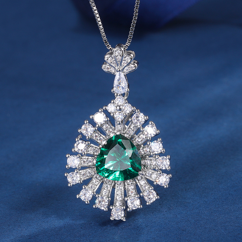 Zhuang sheng joyería europea y americana retro simulación colorido tesoro grasa triángulo hueco con incrustaciones de temperamento colgante collar 10*10