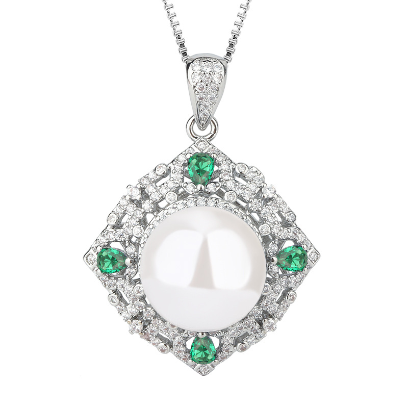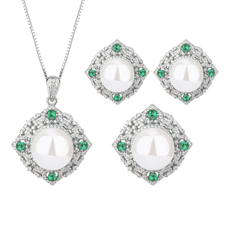 Zhuang Sheng joyas cobre inferior chapado en oro con incrustaciones de perlas fritillary coreano Esmeralda artificial diamante temperamento cuentas blancas traje