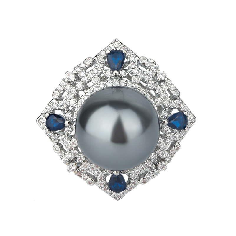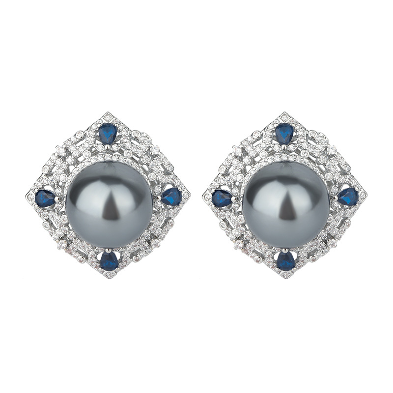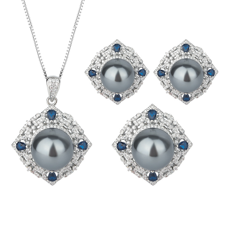 Zhuang Sheng joyas de cobre inferior chapado en oro con incrustaciones de perlas fritillary coreano artificial azul tesoro color diamante incrustado temperamento gris cuentas traje