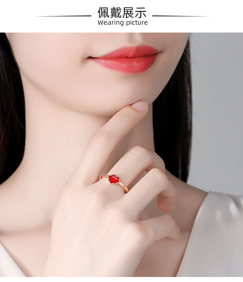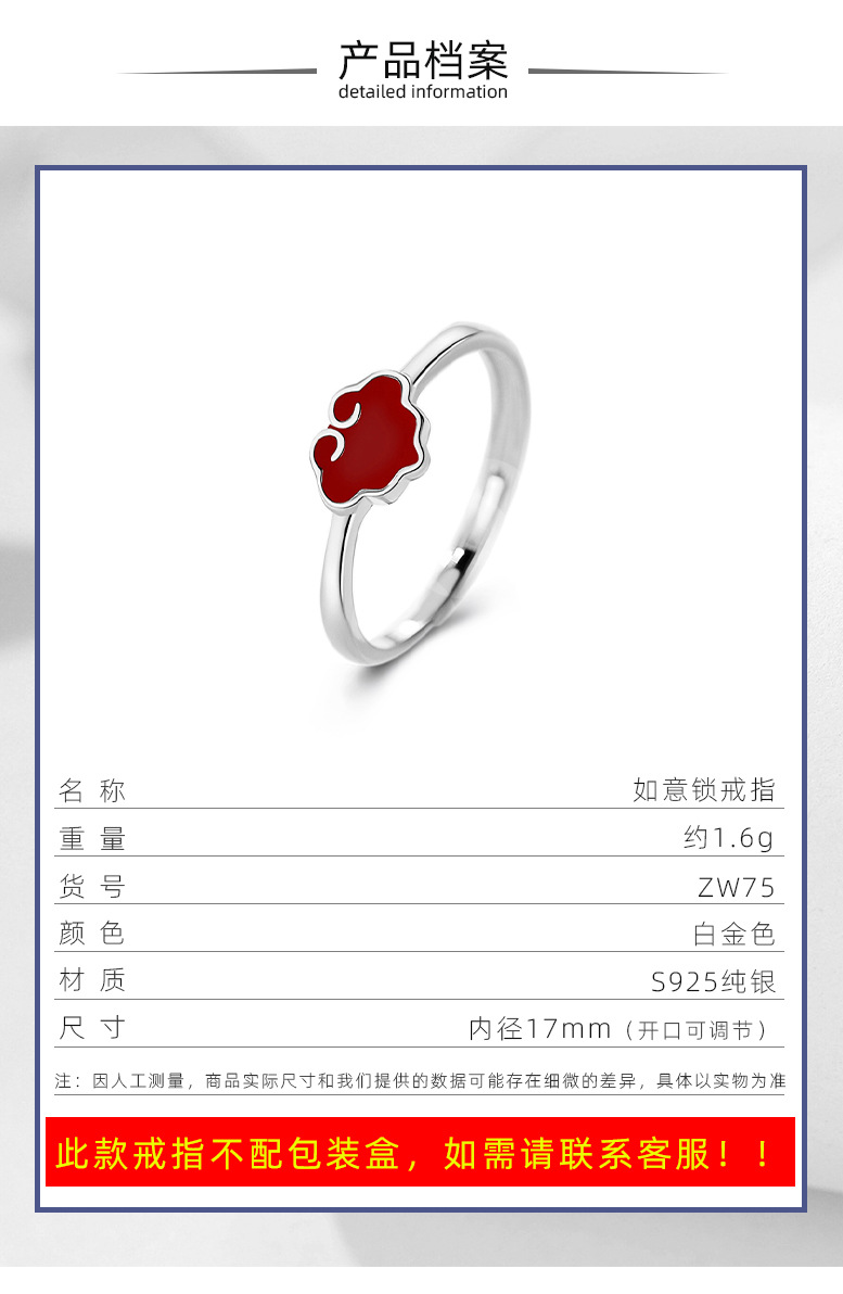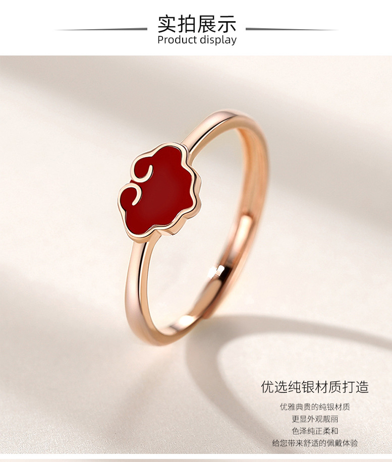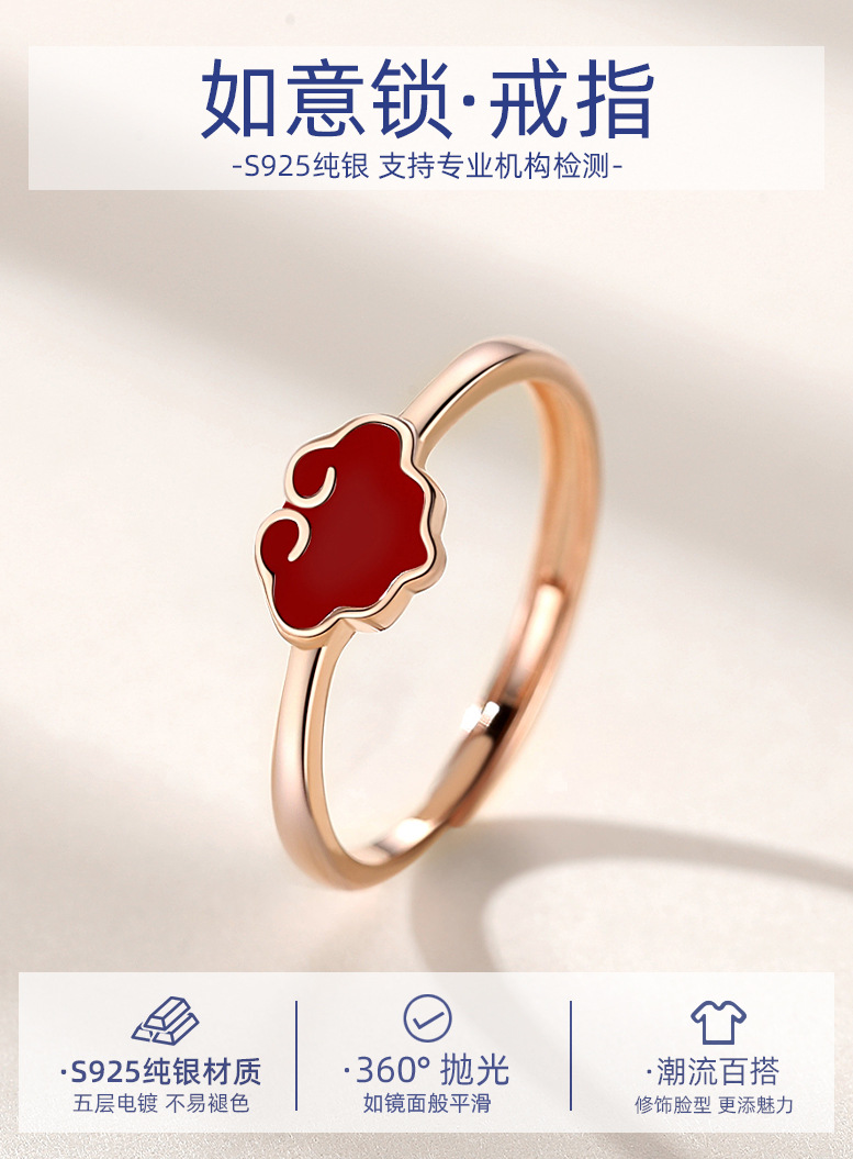 S925 plata esterlina Ruyi bloqueo anillo femenino retro nuevo estilo nacional anillo femenino rojo suerte nube abierto Ajustable dieta anillo de dedo