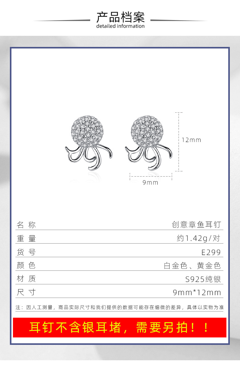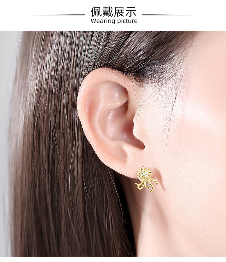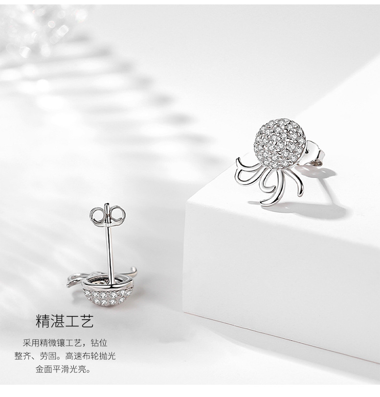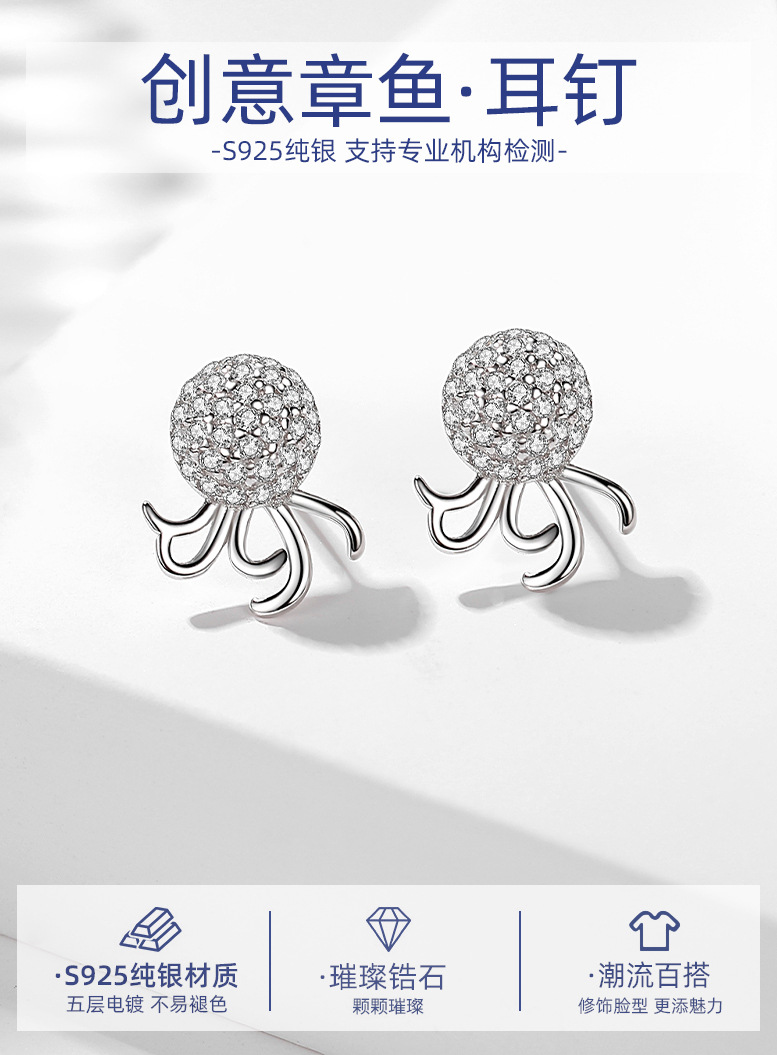 Plata esterlina s925 moda pulpo pendientes estilo coreano luz lujo ins estilo diseño creativo pulpo pendientes con diamante