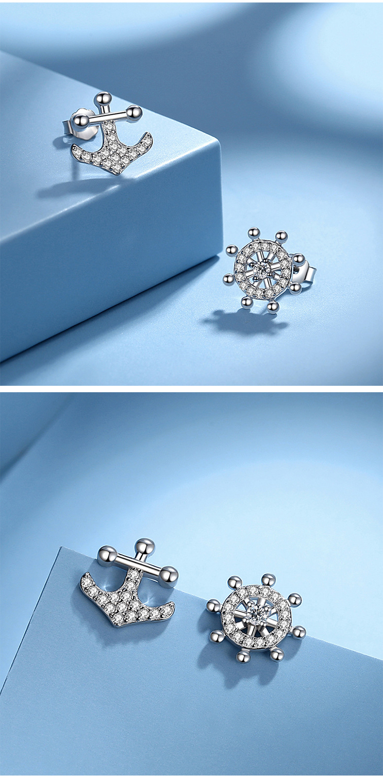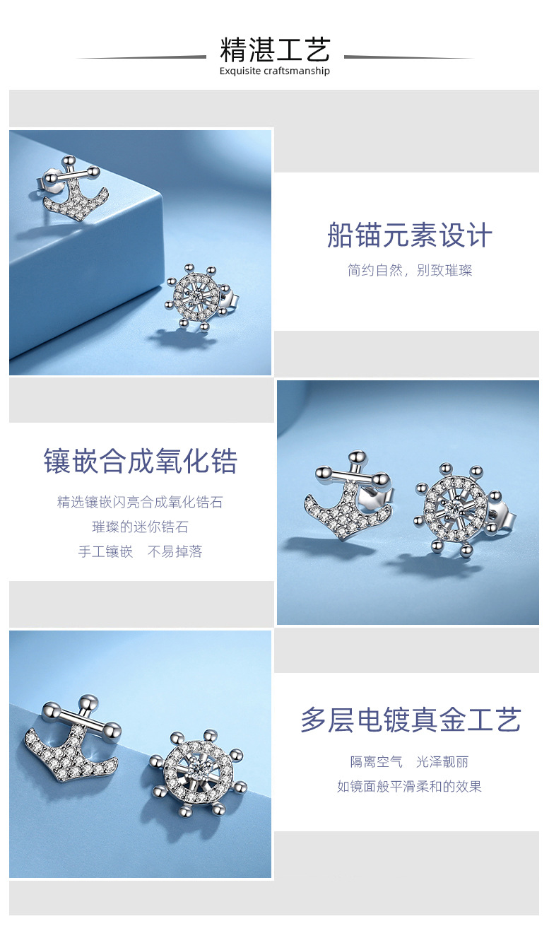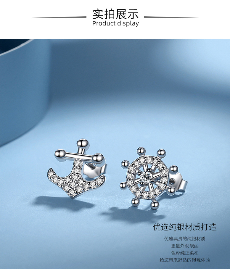 Creativo de plata esterlina timón pendientes S925 diamante completo timón asimétrico estilo coreano pendientes ins estilo mismo estilo