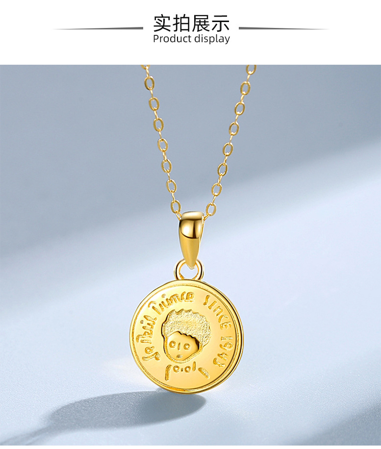 S925 pequeño príncipe colgante luz femenina de lujo nicho ronda marca clavícula cadena moneda pura plata red temperamento frío estilo