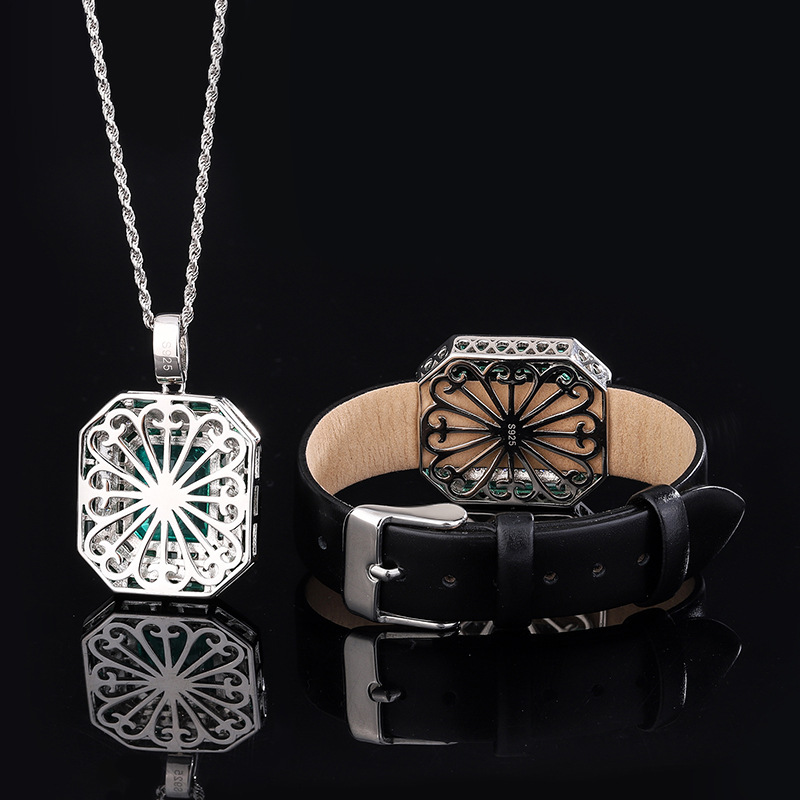 Zhuang Sheng joyería S925 todo el cuerpo de plata TikTok Venta caliente simulación abuela verde cuadrado marca joyería de lujo