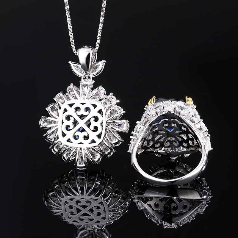 Zhuang Sheng joyería S925 plata imitación color tesoro azul azúcar Torre industria pesada inferior sello colgante anillo traje 14*14-12*1