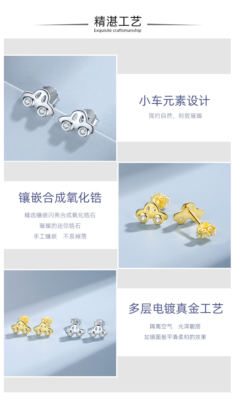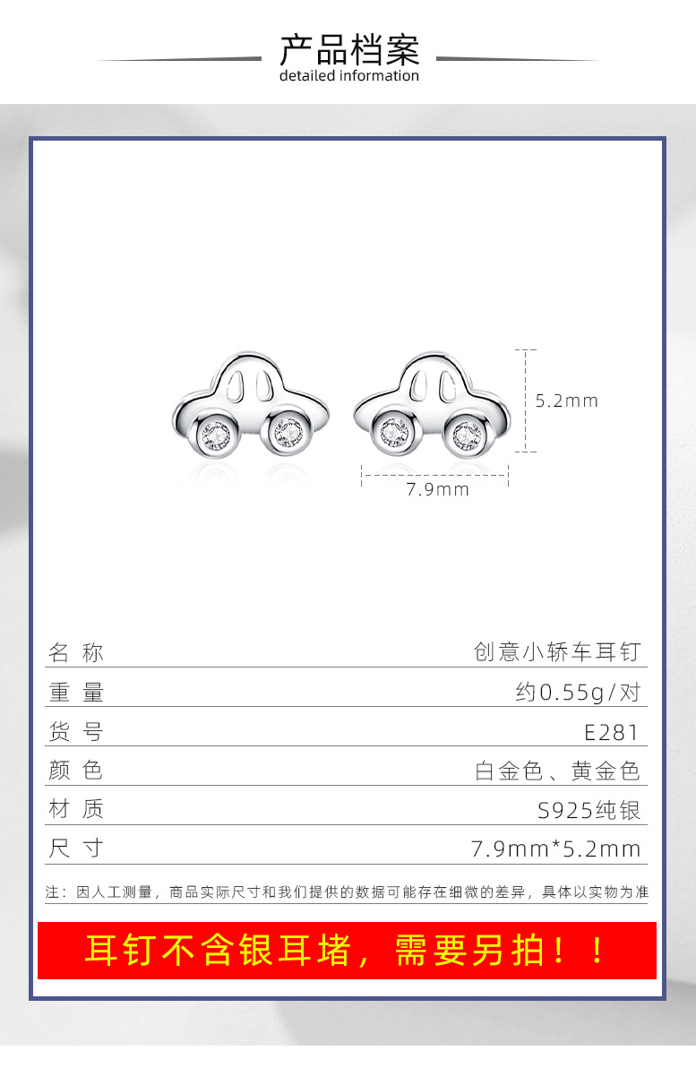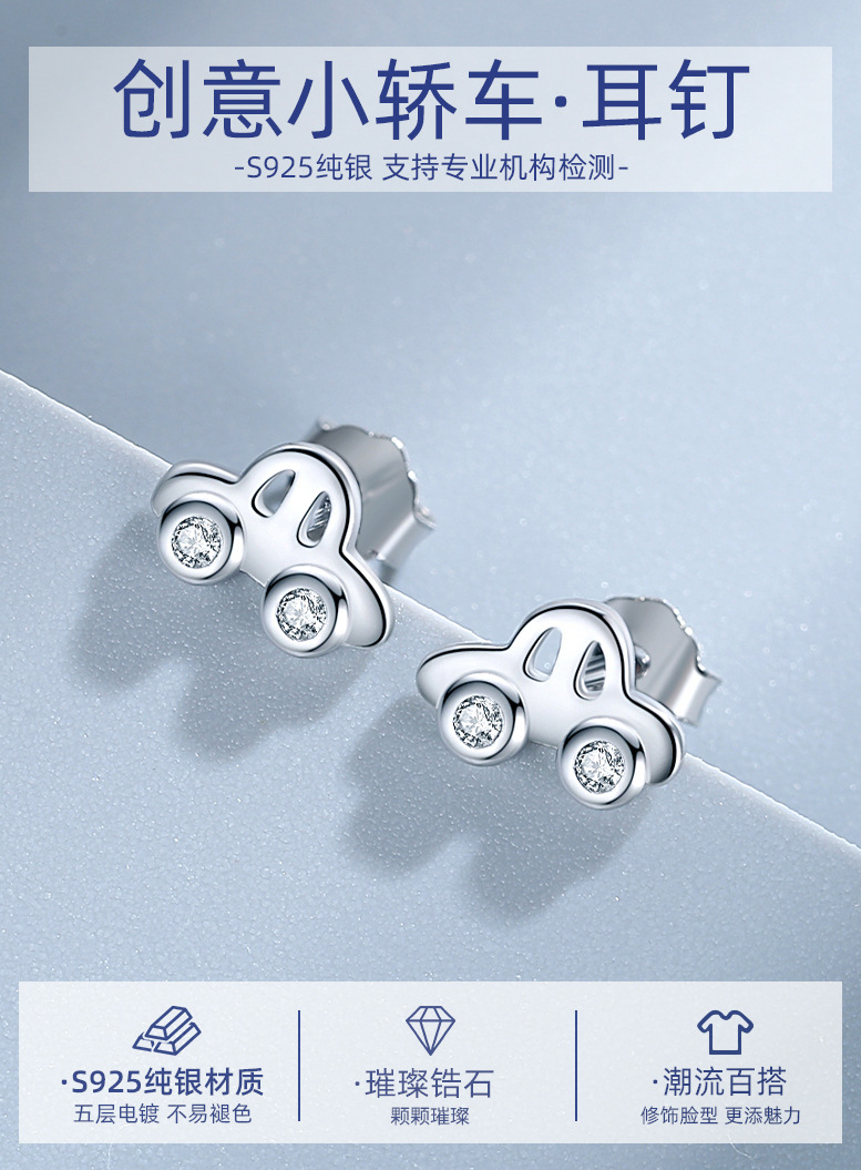 Aretes creativos de las mujeres de plata esterlina del coche S925 al por mayor coreano lindo mini coche pendientes ins estilo diversión