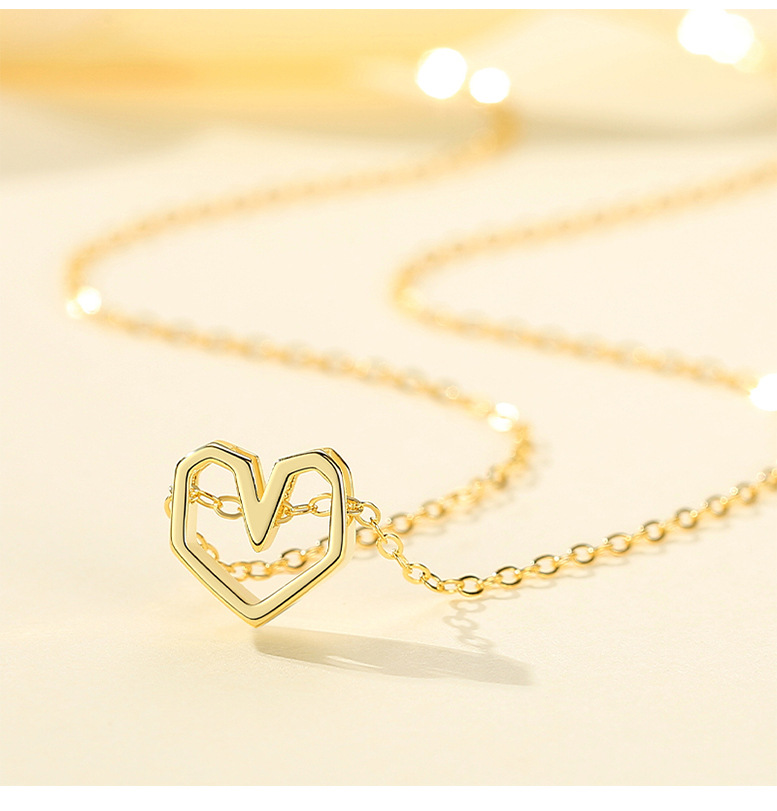 S925 plata esterlina pequeño collar de corazón hueco fresco simple de las mujeres de moda en forma de corazón colgante corto collar novias regalo
