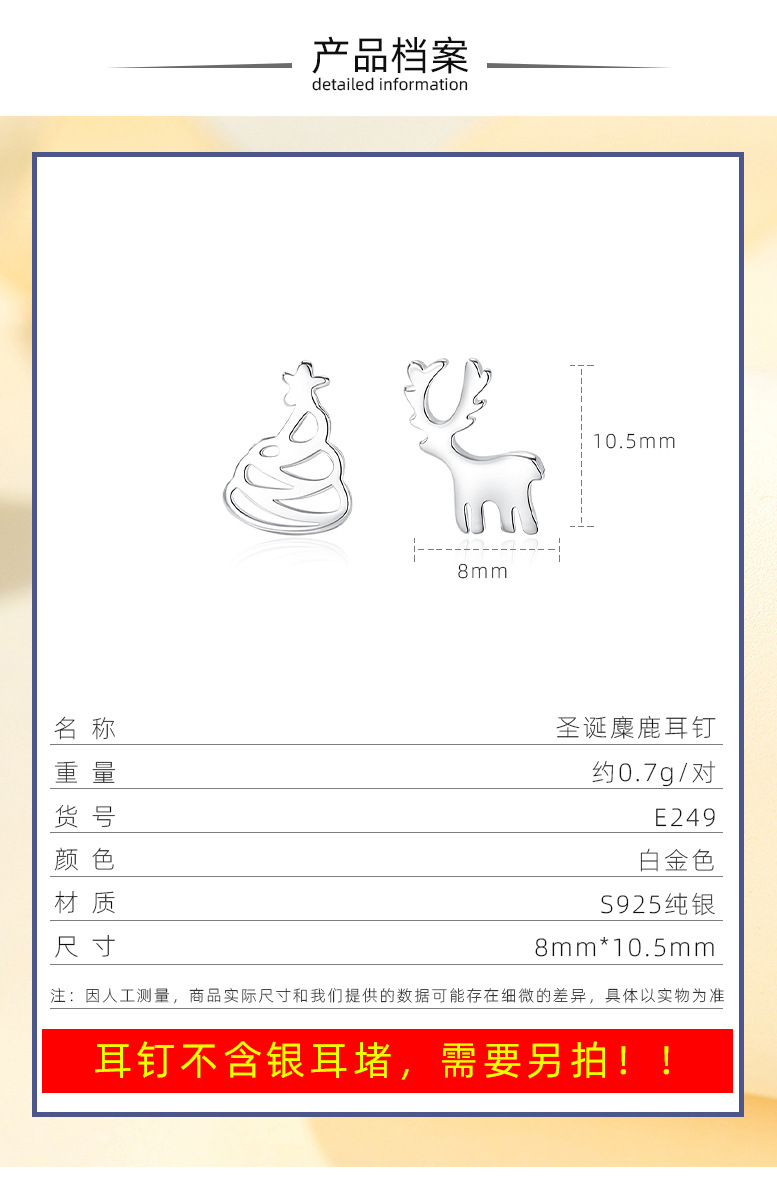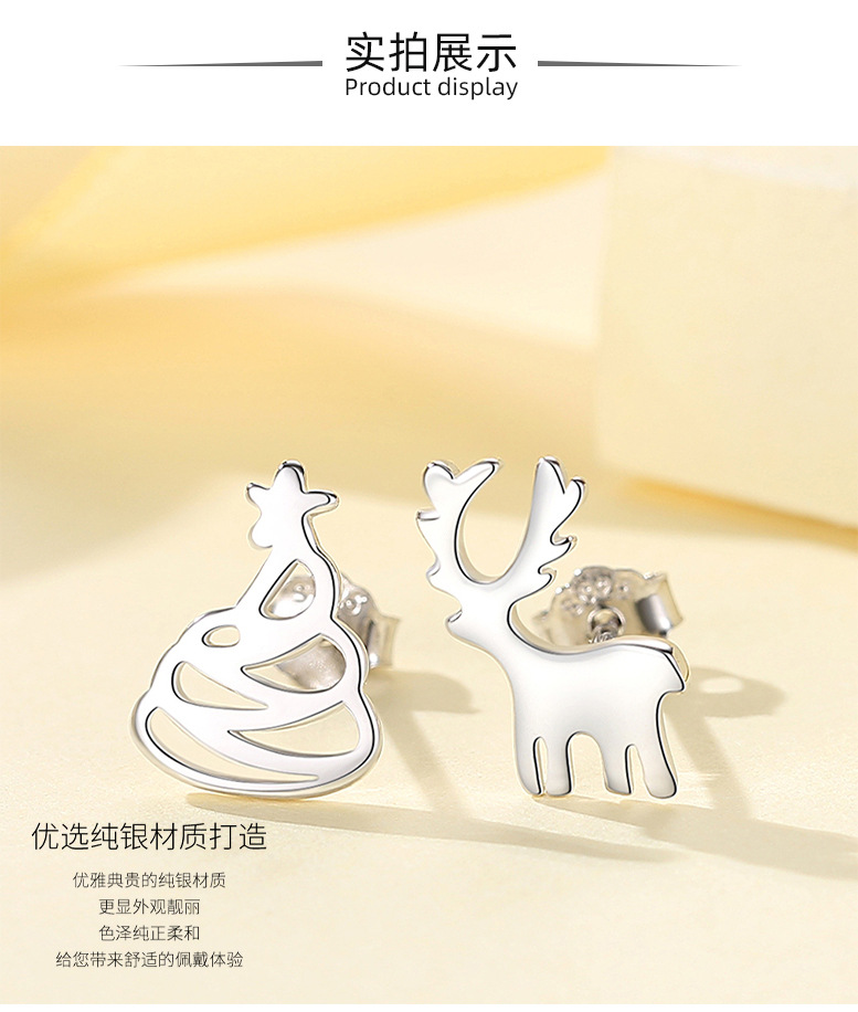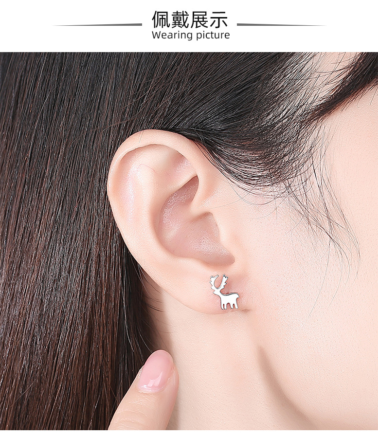 Pendientes de plata de ley s925 pendientes japoneses y coreanos de la moda Super lindo de Navidad tridimensional ELK pendientes lindo temperamento animal pendientes de plata