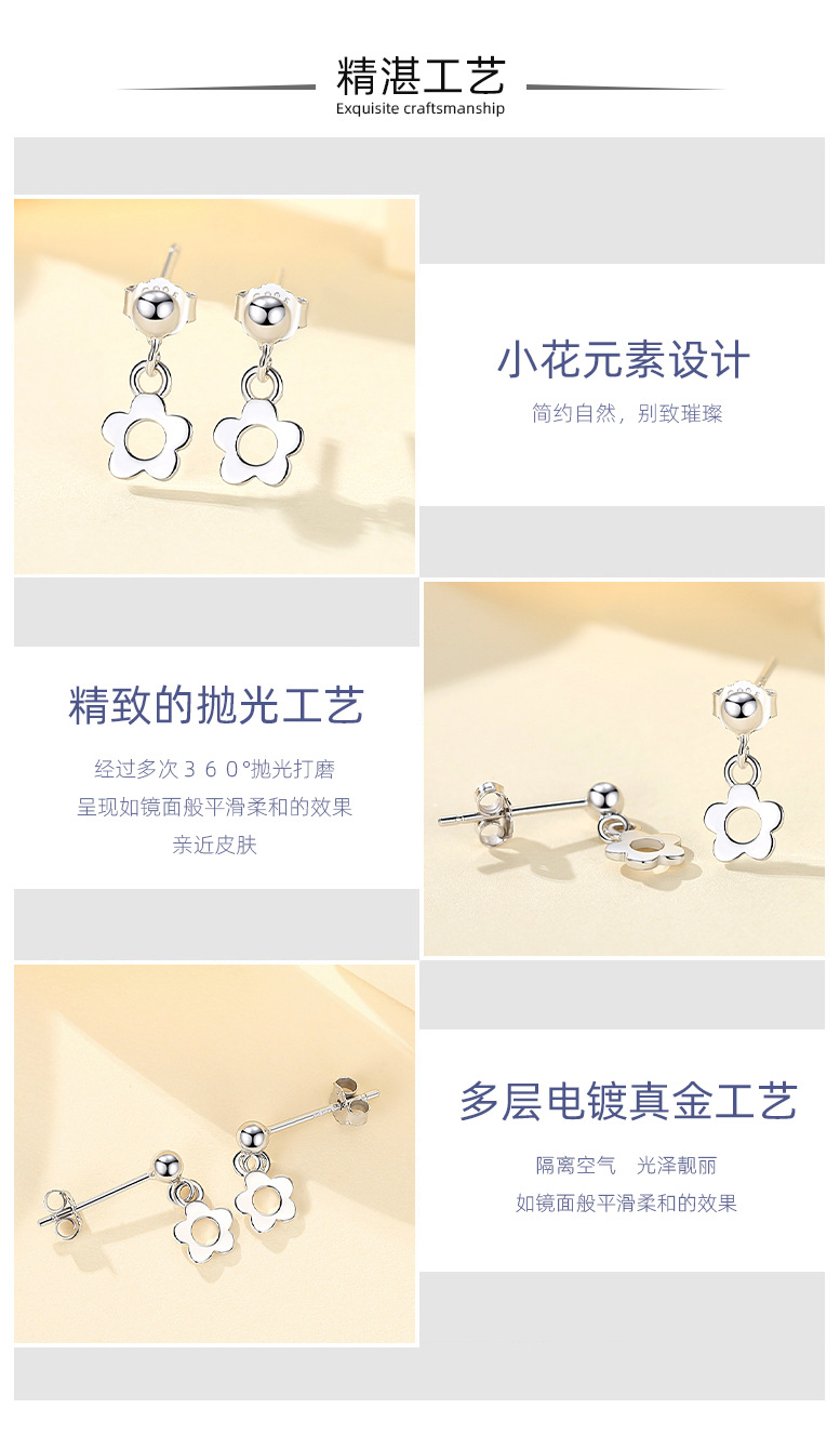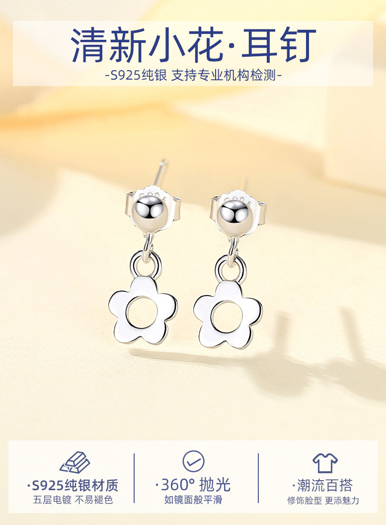 S925 plata esterlina pequeña flor estilo coreano pequeño hueco girasol pendientes simple elegante estudiante artístico fresco estilo Mori