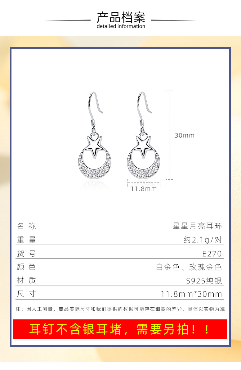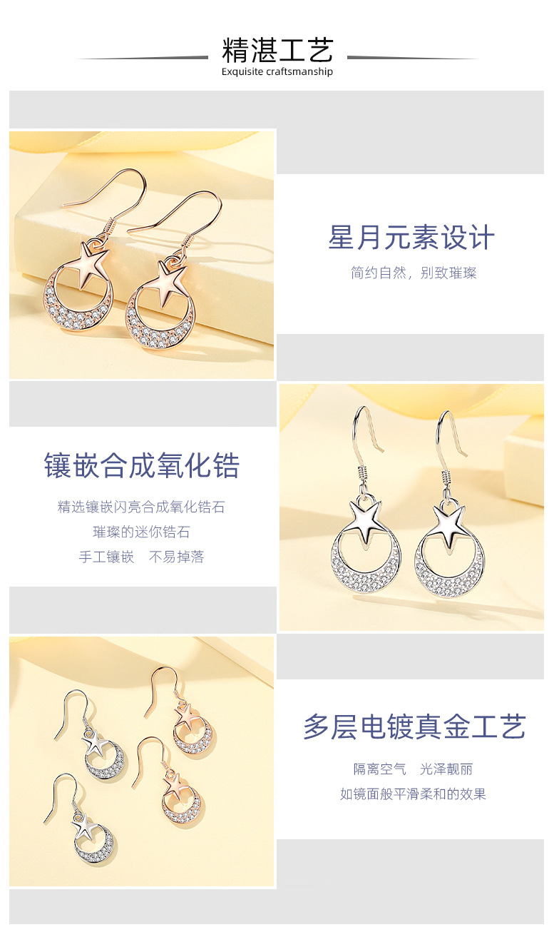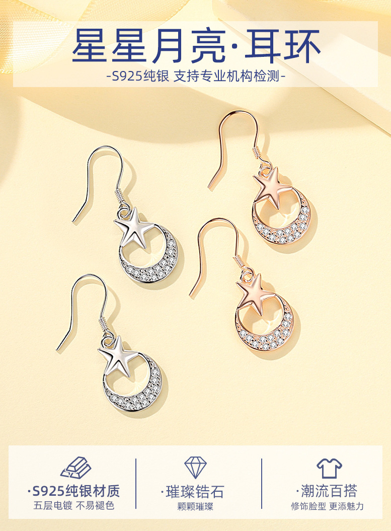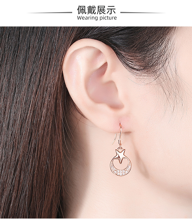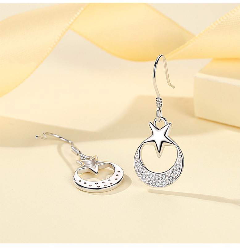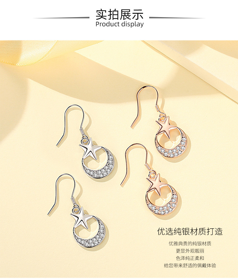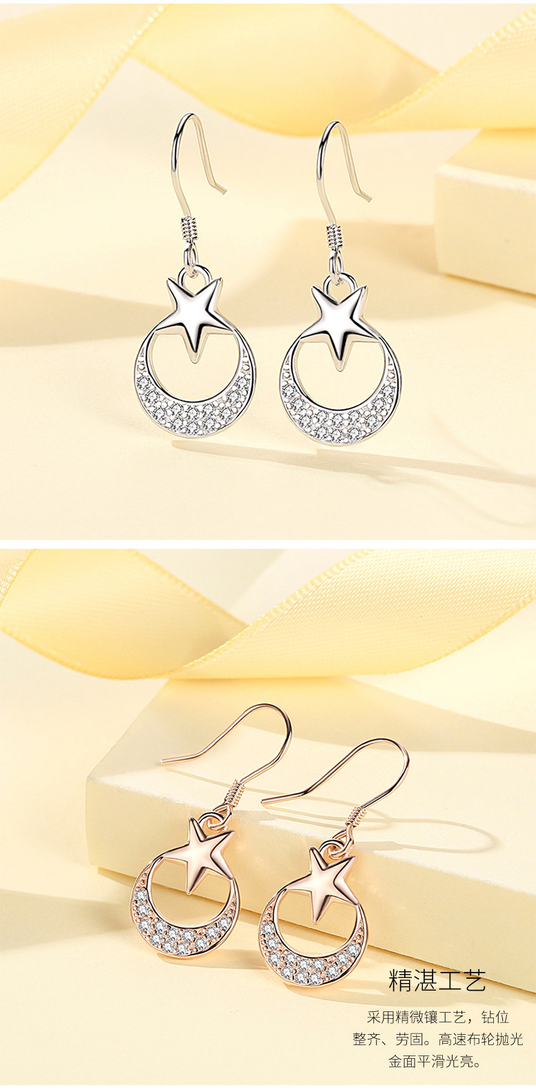 S925 nuevo estilo coreano pendientes de plata estrella Luna personalidad transfronteriza europea y americana pendientes de moda joyería al por mayor