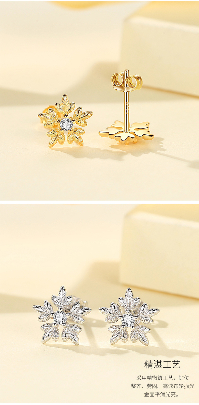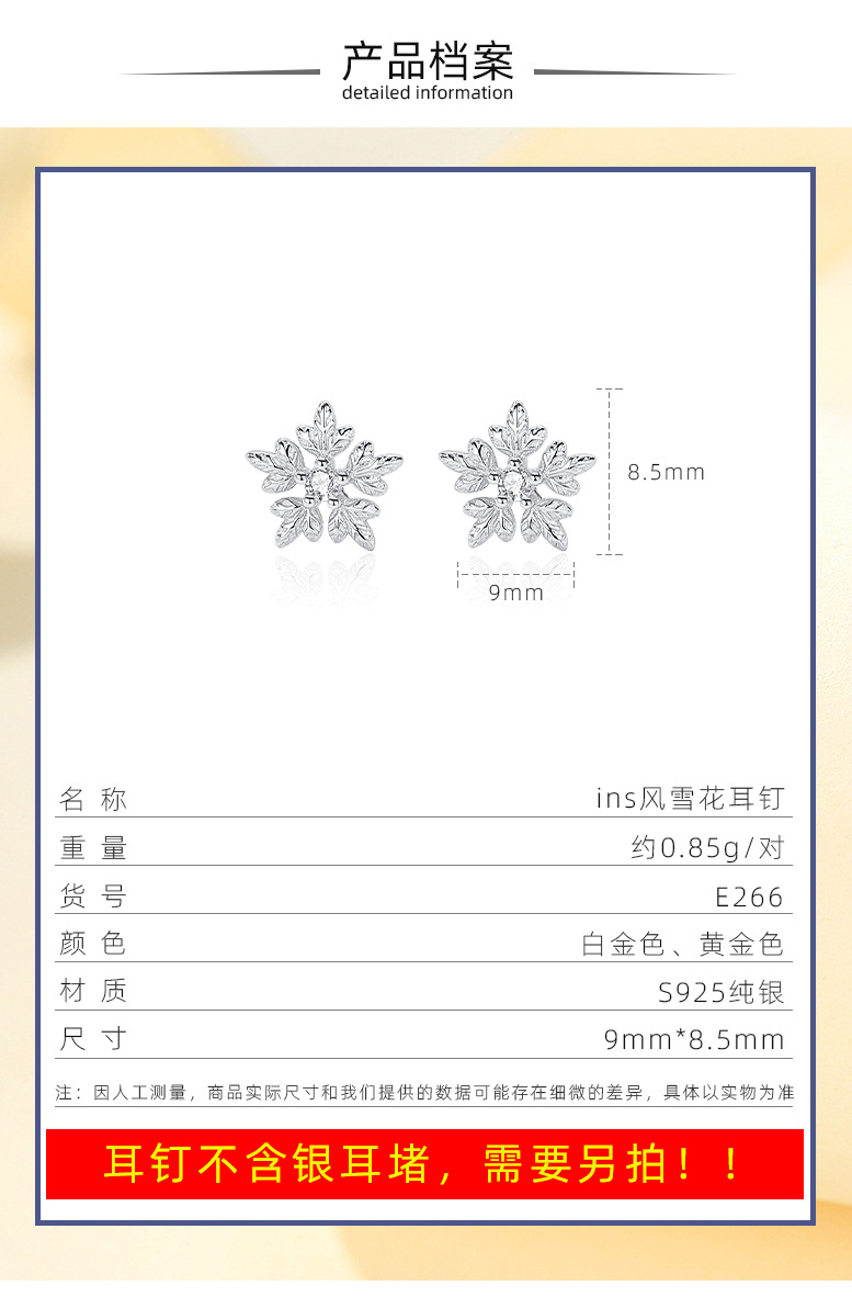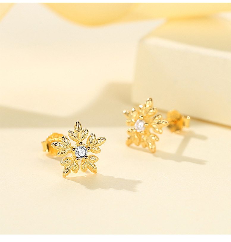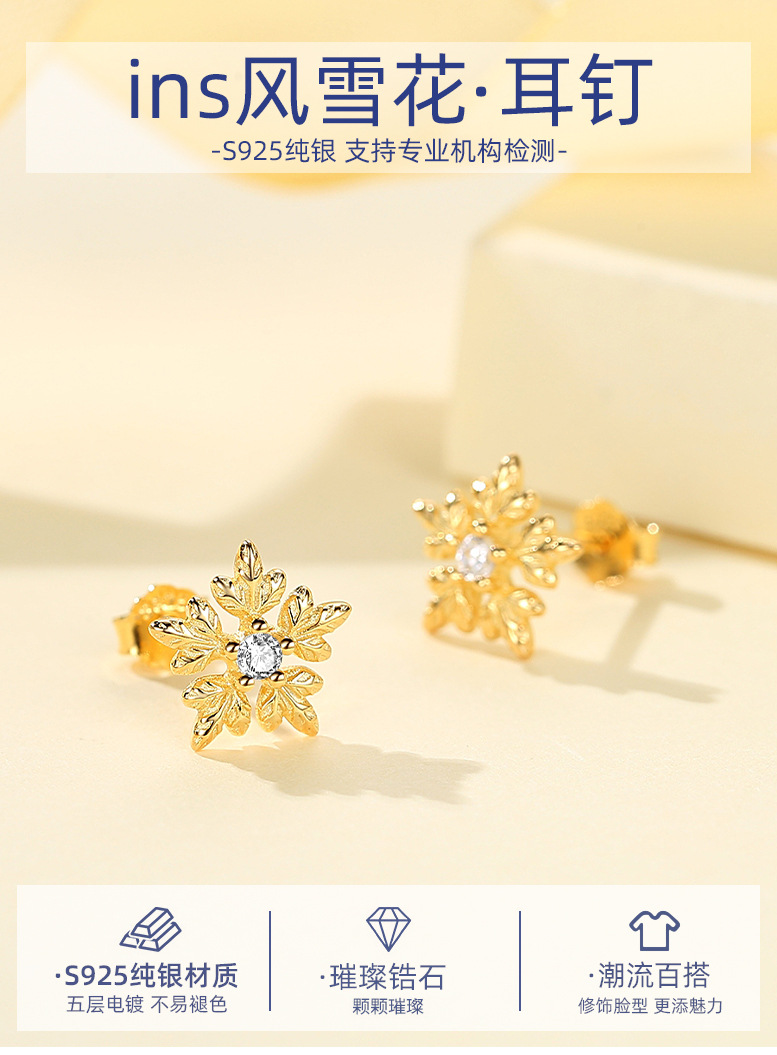 S925 plata esterlina copo de nieve pendientes mujer estudiantes japoneses y coreanos pequeño dulce simple moda chica corazón accesorios al por mayor