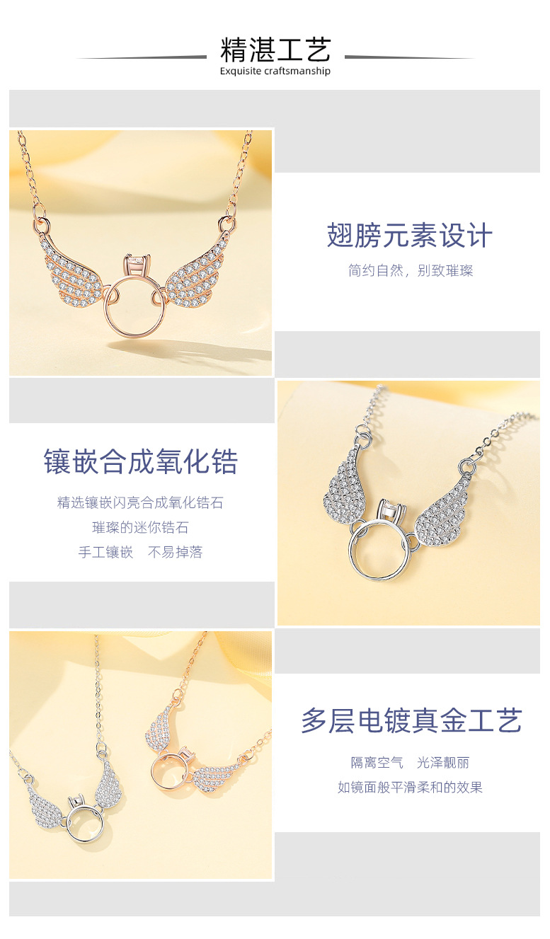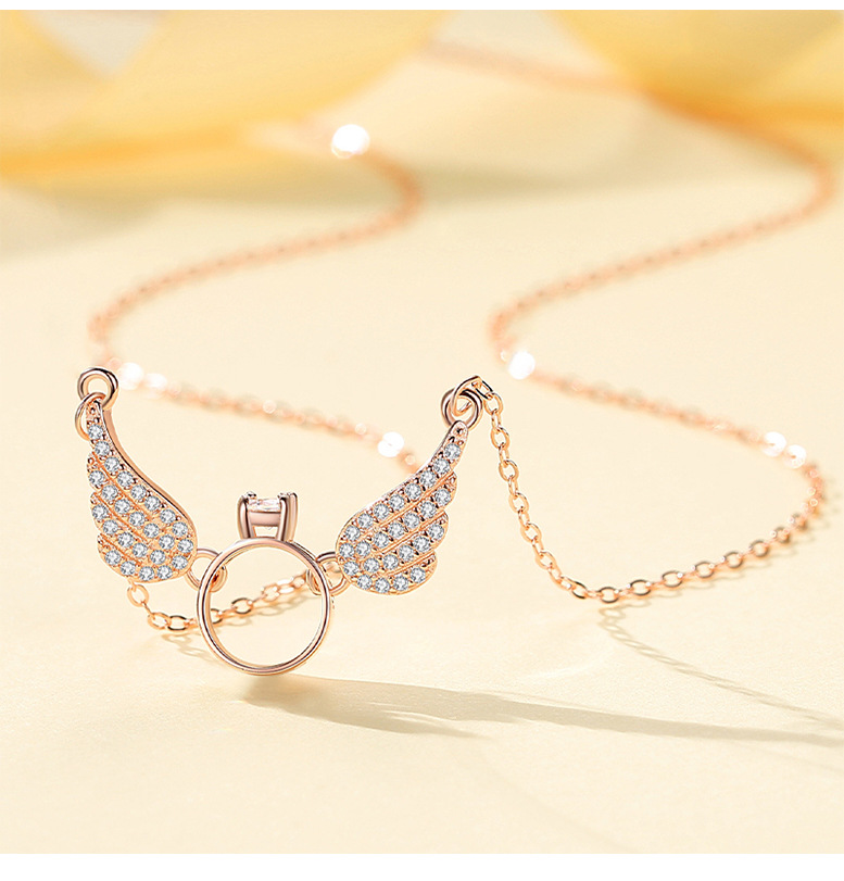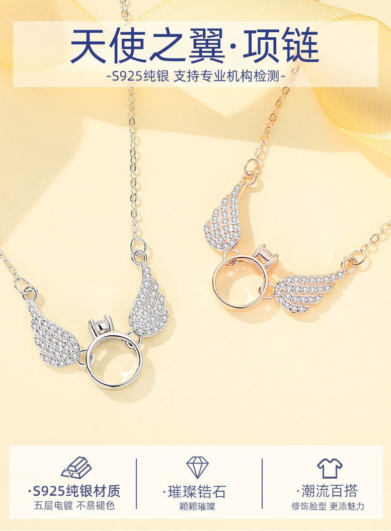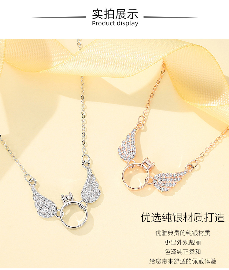 Europea y americana S925 estilo de plata de ley alas de Ángel collar ins nicho diseño diamante incrustado alas collar al por mayor para las mujeres