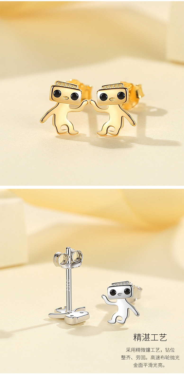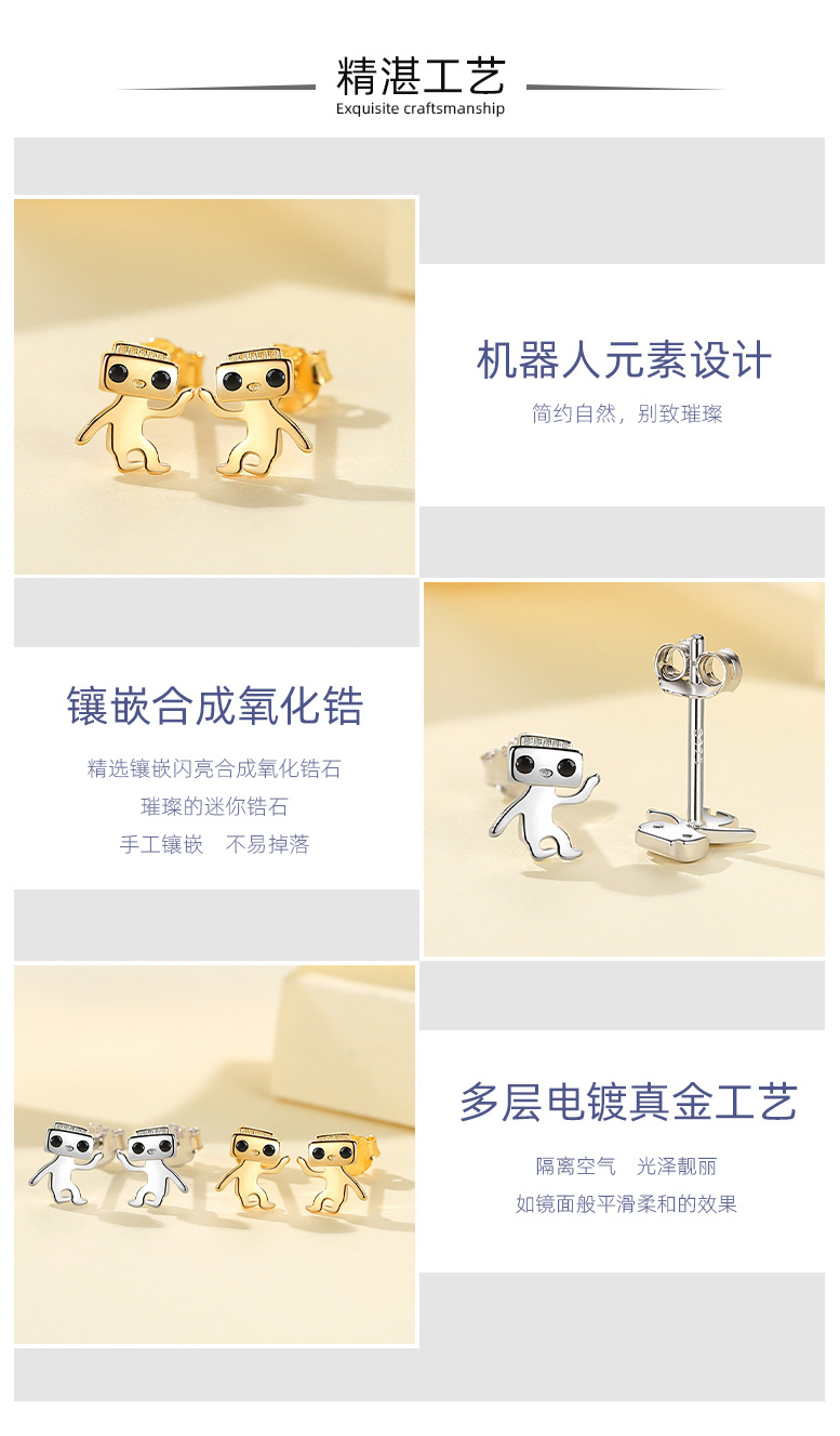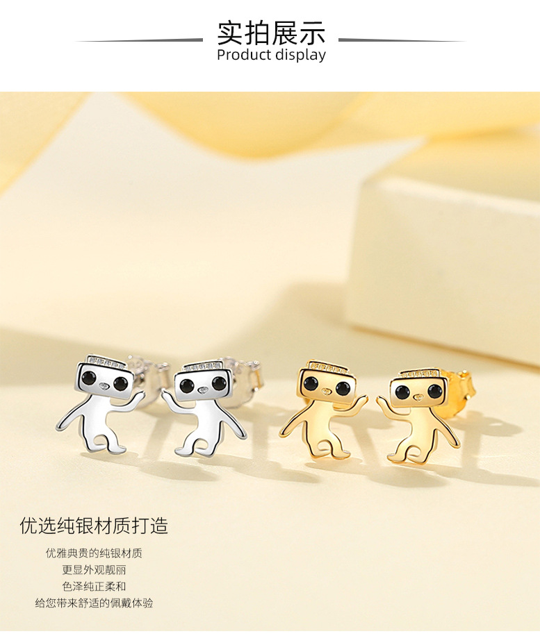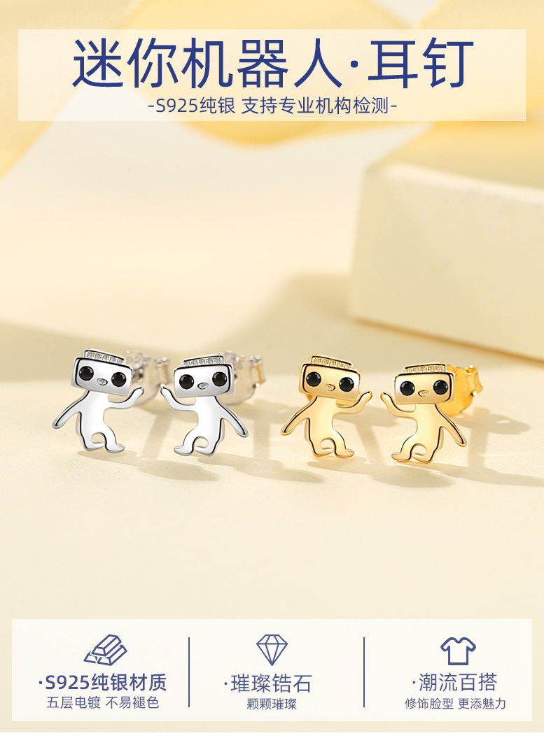 Simple S925 plata esterlina europea y americana ins nicho estilo francés Cool robot diseño temperamento espárragos al por mayor
