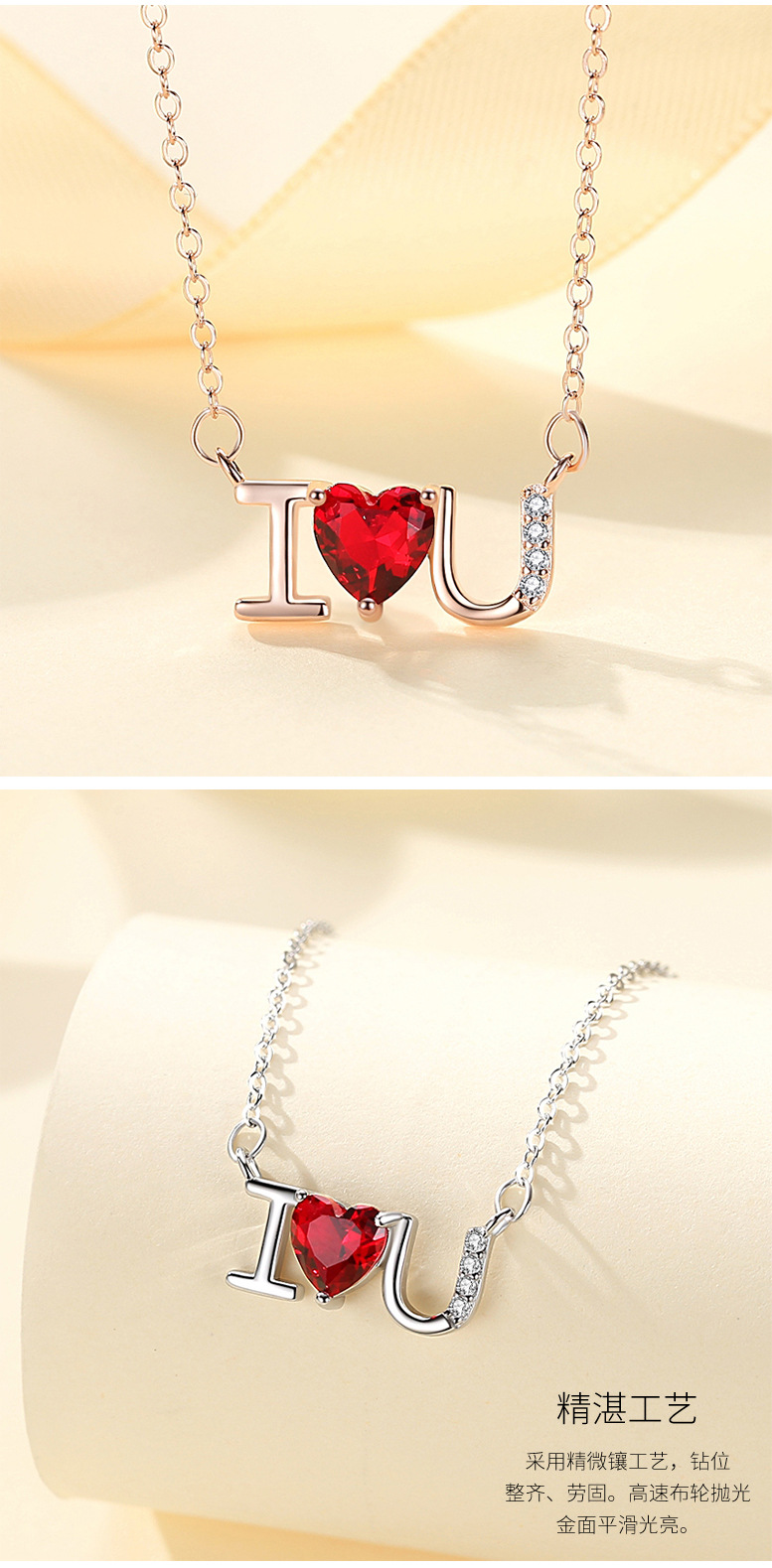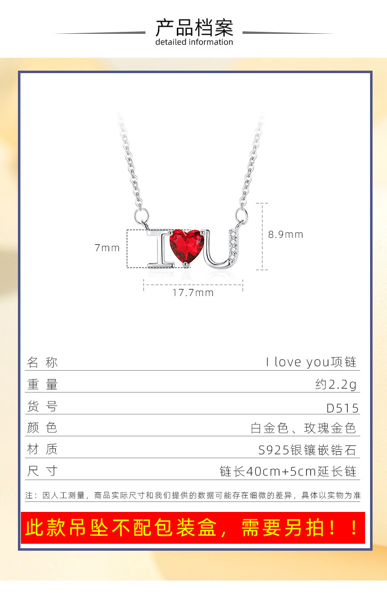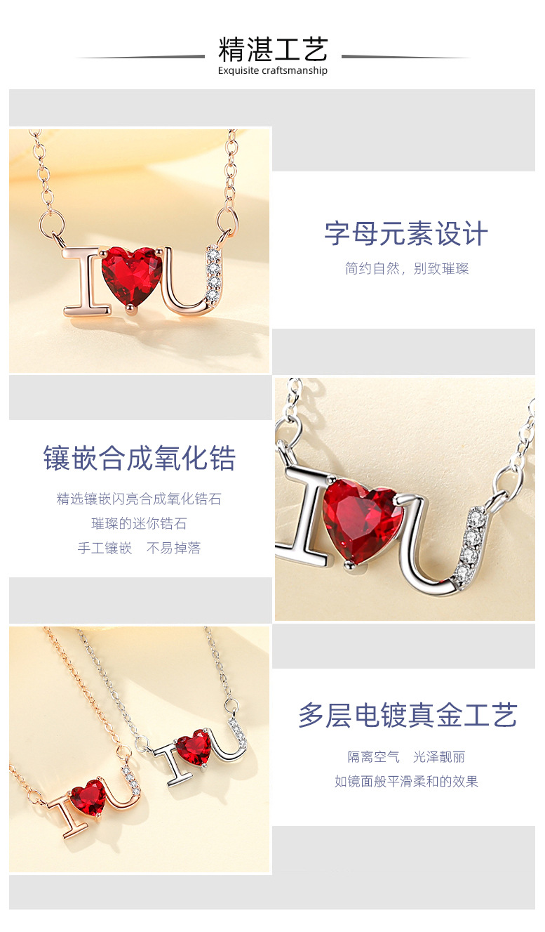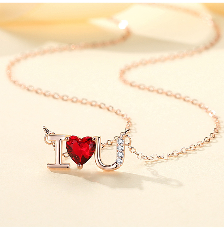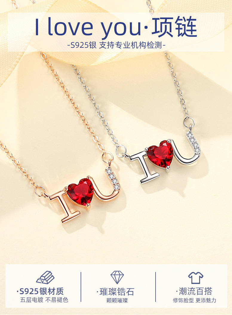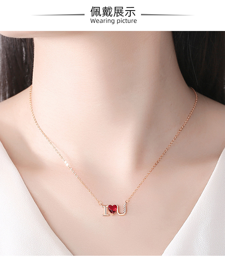 Plata esterlina s925 diamante ilovey te amo collar de cadena clavícula femenina simple joyería del Día San Valentín