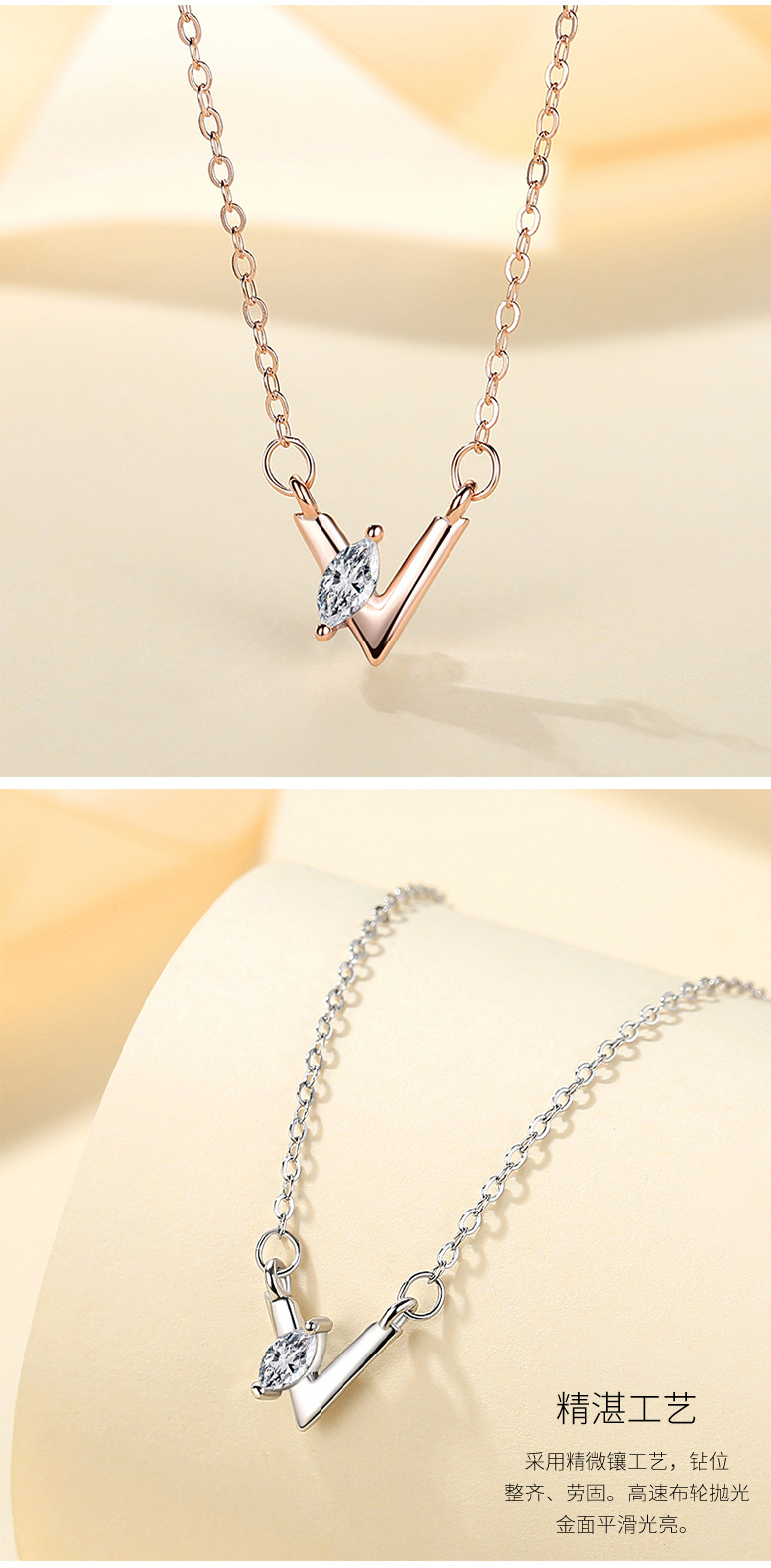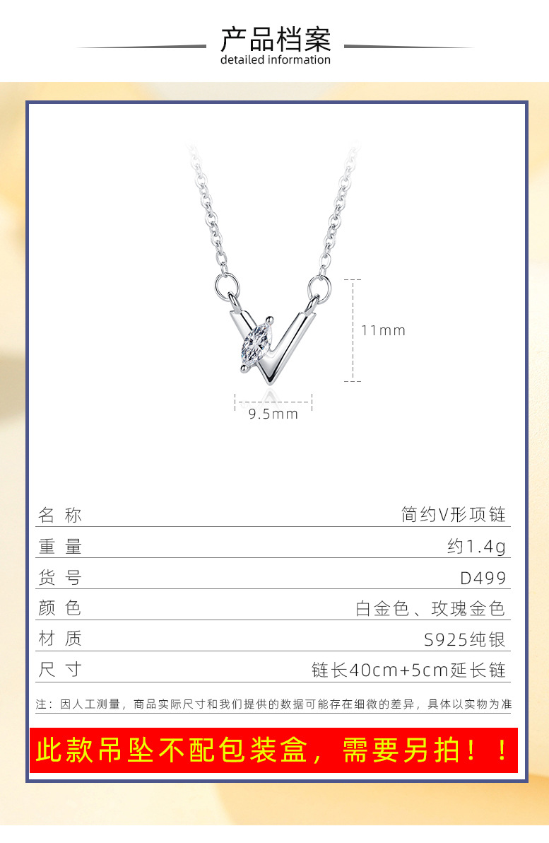 S925 collar de plata esterlina letra V simple collar al por mayor nicho femenino diseño sentido joyería clavícula cadena ins estilo frío