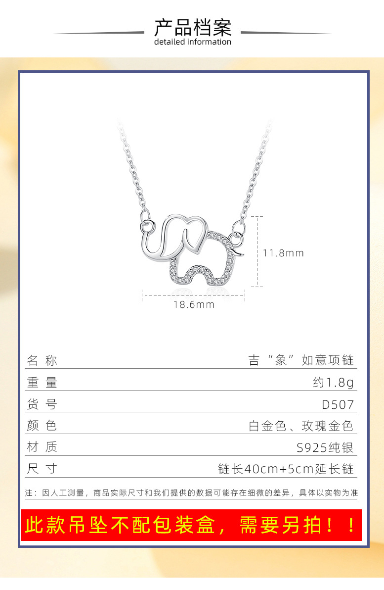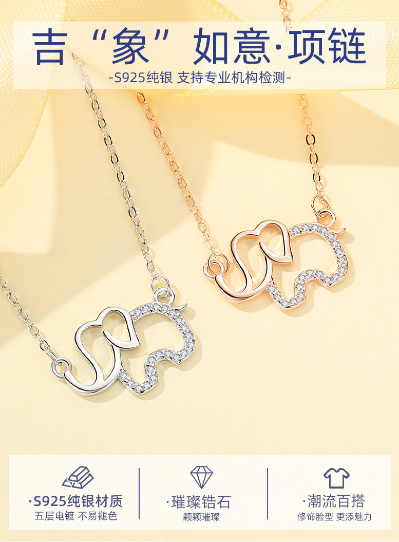 Plata esterlina S925 elefante collar nicho femenino personalizado creativo animal elefante colgante japonés y coreano Mori clavícula cadena al por mayor