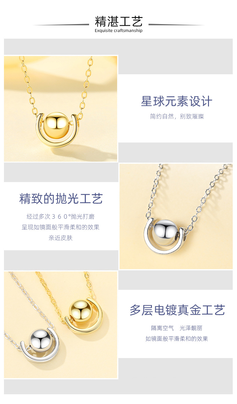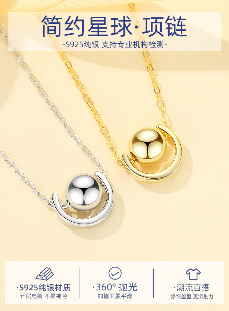 Plata esterlina s925 planeta colgante collar para mujeres estilo japonés y coreano de moda elegante simple todo-fósforo estudiante clavícula cadena forma
