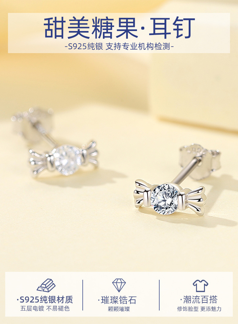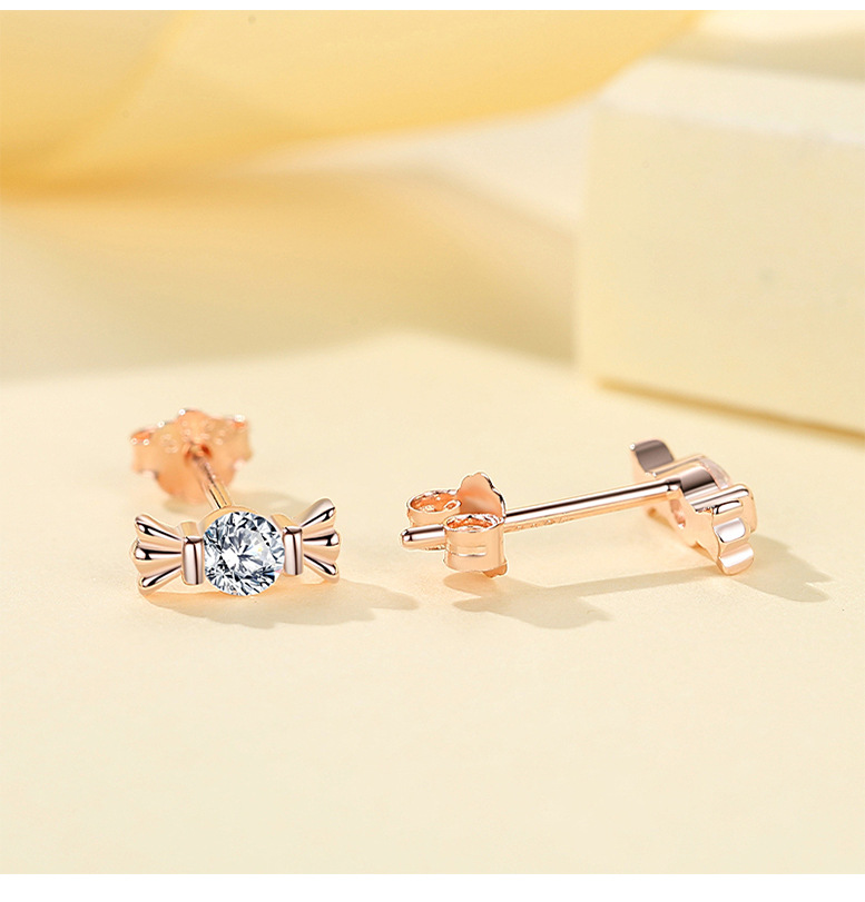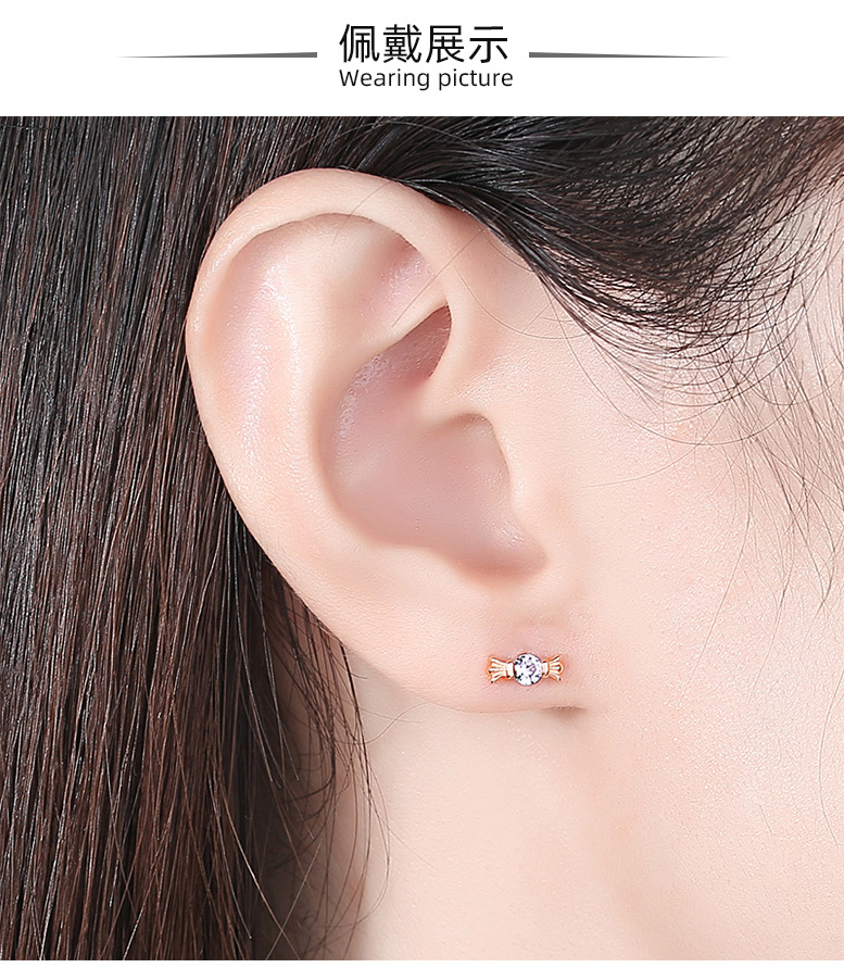 S925 plata esterlina candy stud pendientes personalidad de la moda pendientes japoneses y coreanos temperamento coreano simple arco galvanizado oro rosa