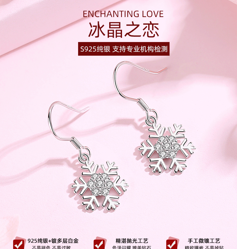 S925 copo de nieve pendientes de cristal de hielo de plata de ley de las mujeres pendientes de borla simples elegantes 2020 nuevos pendientes de moda regalo