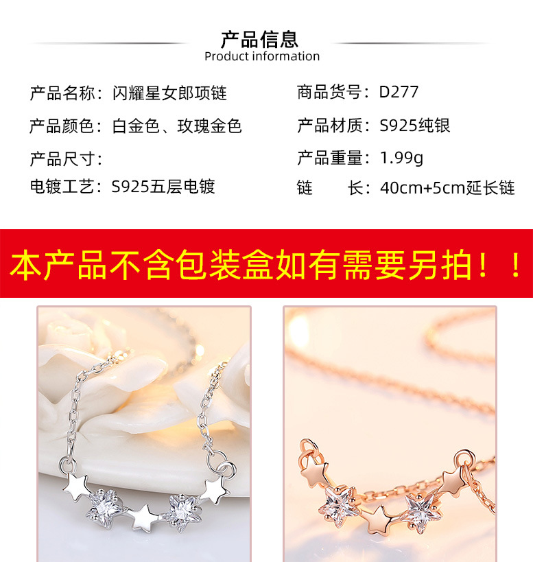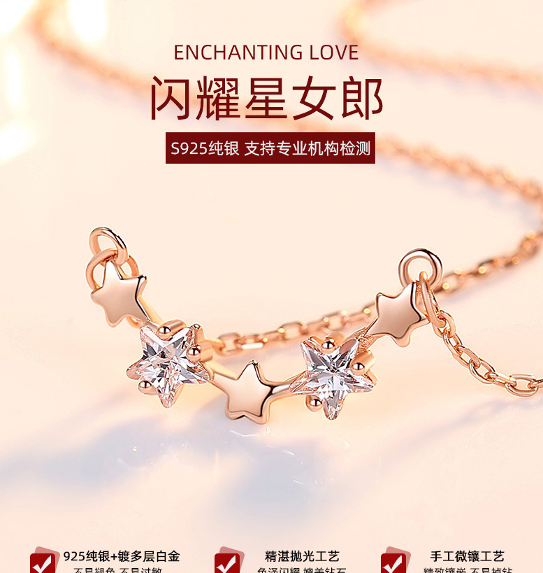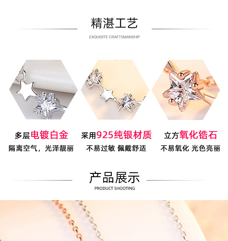 Collar de plata esterlina S925 estrella conectada estilo simple de moda con incrustaciones de collar de estrella de circón estrella de cinco puntas joyería brillante