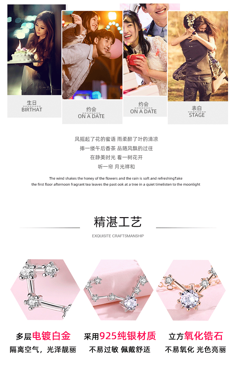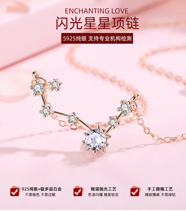 S925 plata de ley flash estrella símbolo lindo collar de constelación chica creativa cadena de clavícula salvaje regalo al por mayor