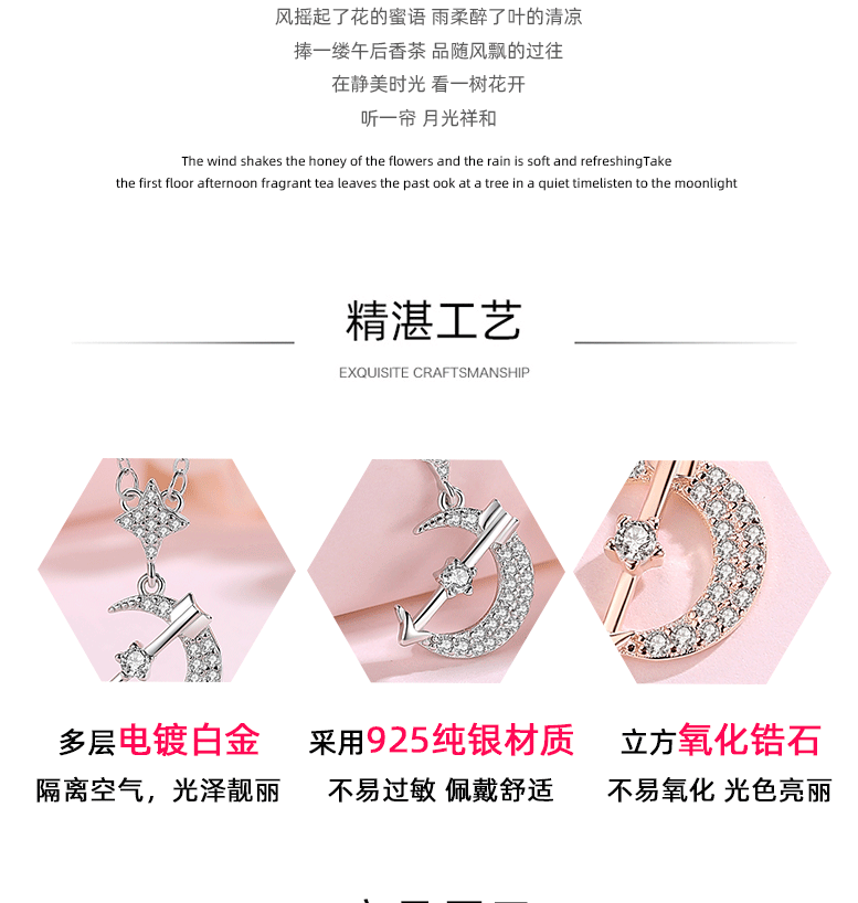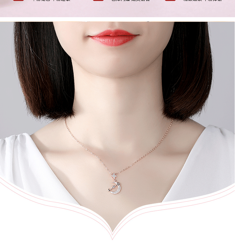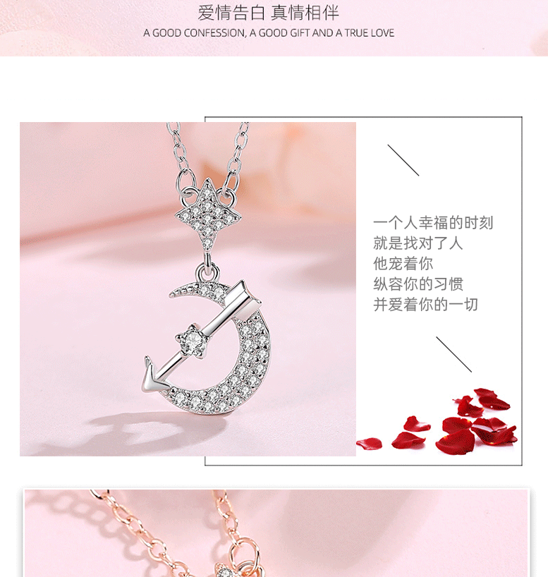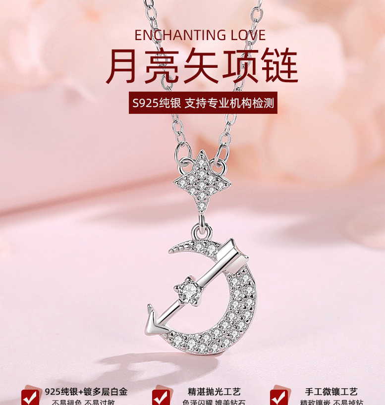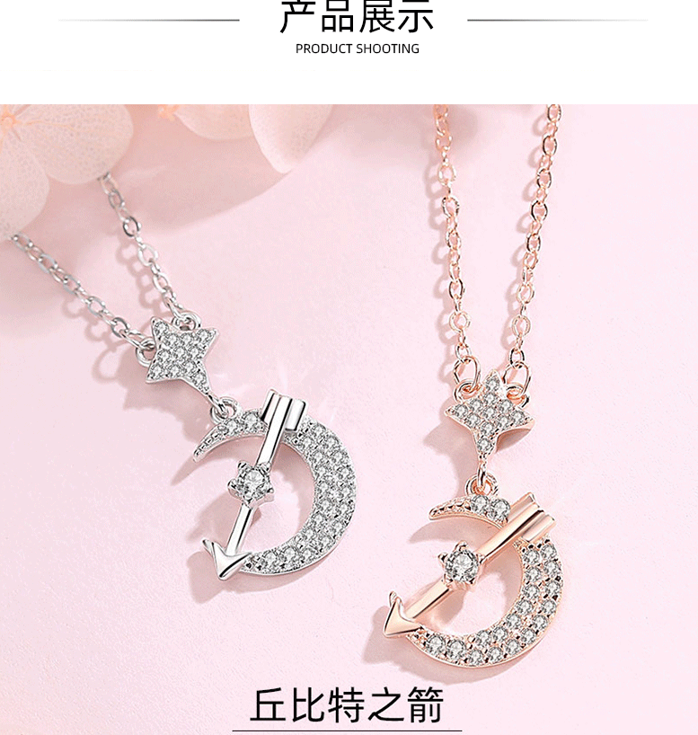 925 plata esterlina estrella Luna collar femenino neto popular rojo elegante simple Cupido flecha clavícula cadena viento frío para novia