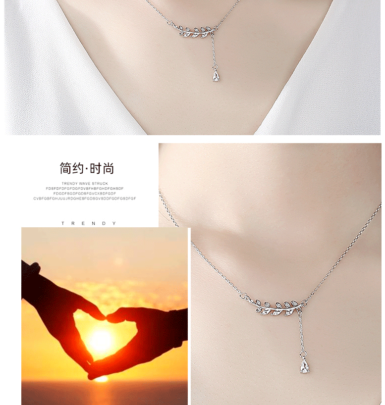 Collar de hoja de plata esterlina s925 temperamento femenino estilo coreano ins simple estudiante estilo frío nicho Cadena de clavícula para novia