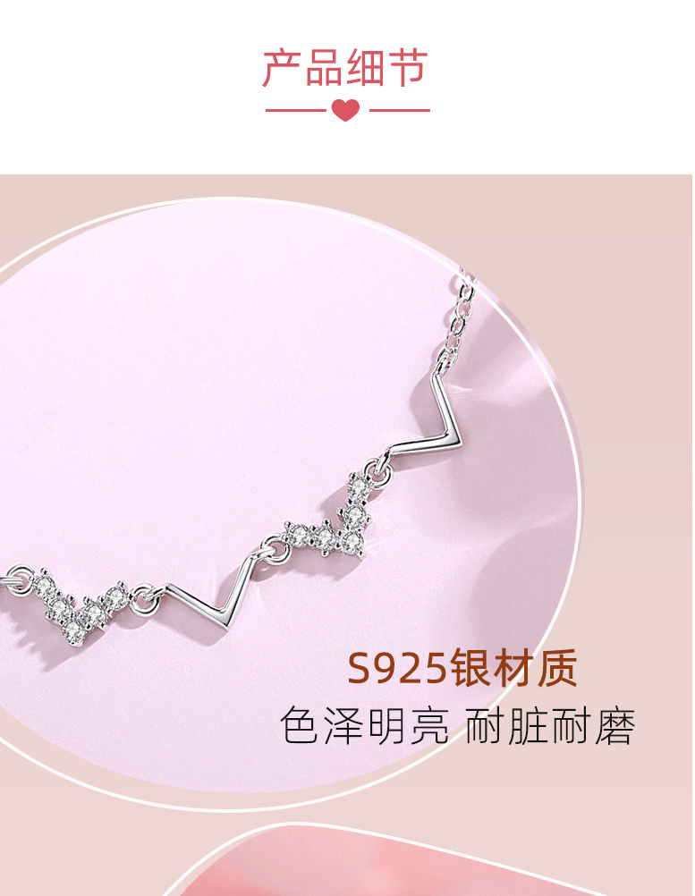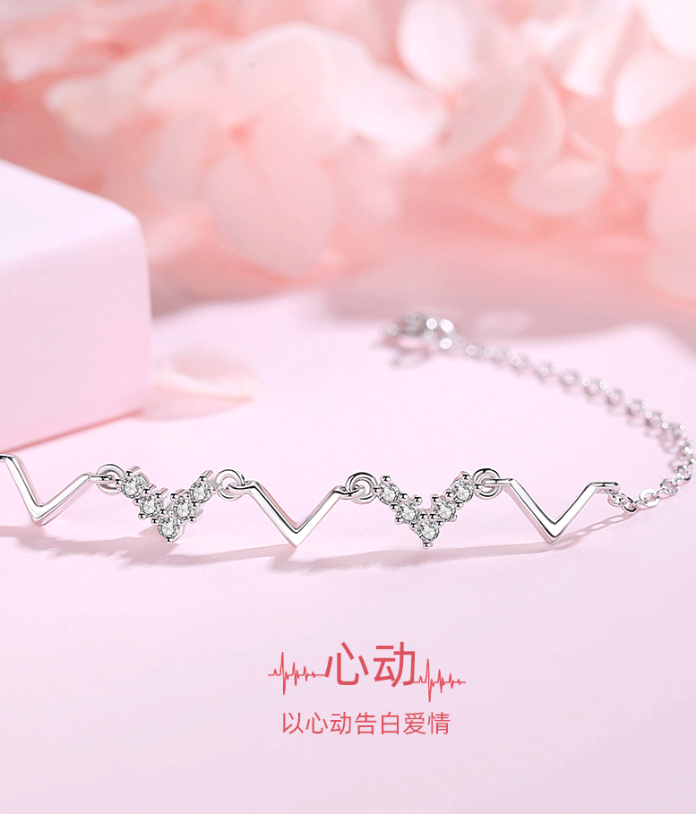 Plata esterlina 925 Heartbeat pulsera mujer estudiante simple nicho diseño en línea hongsen novias pulsera regalo para novia