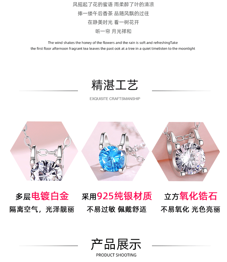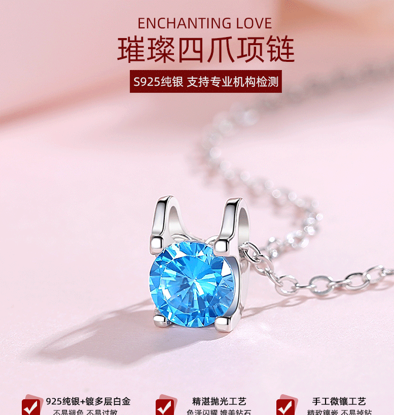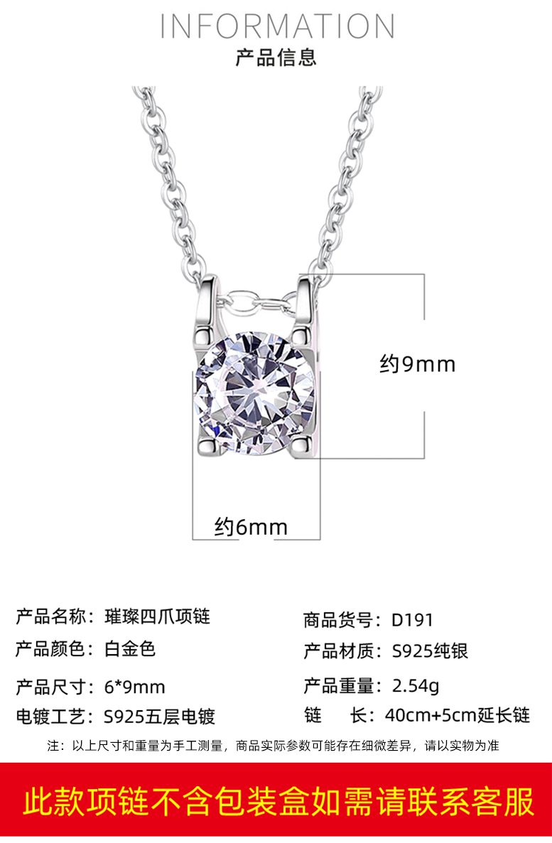 S925 plata esterlina cuatro garra collar de diamantes cuadrilátero geométrico simple temperamento collar nicho diseño sentido venta al por mayor