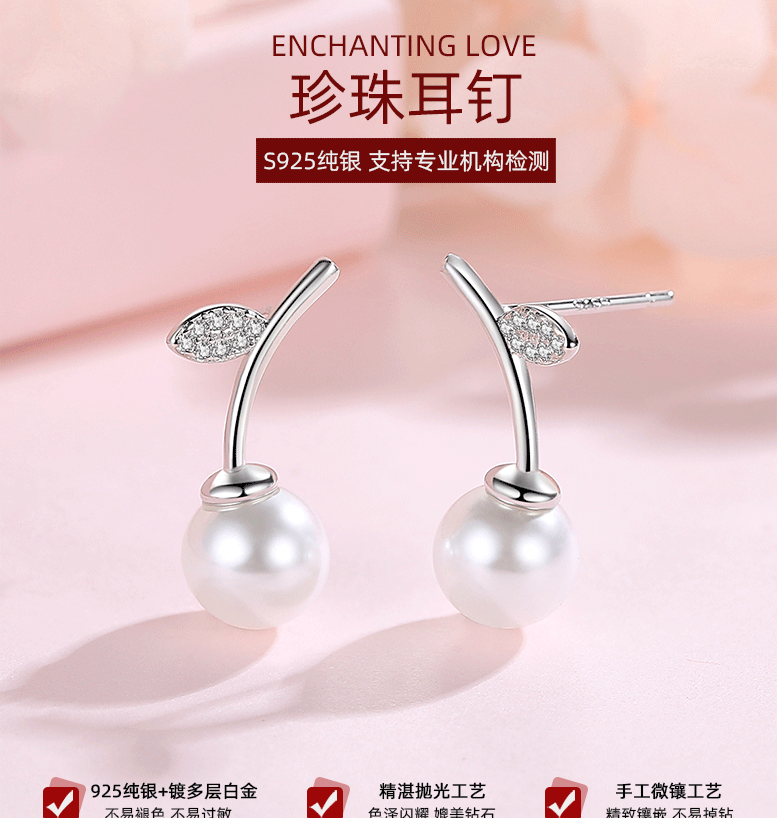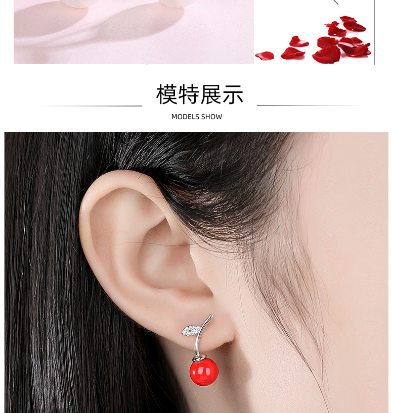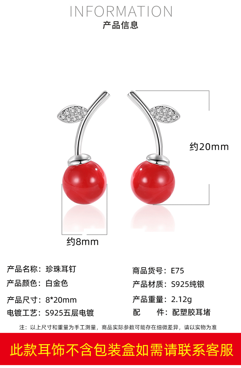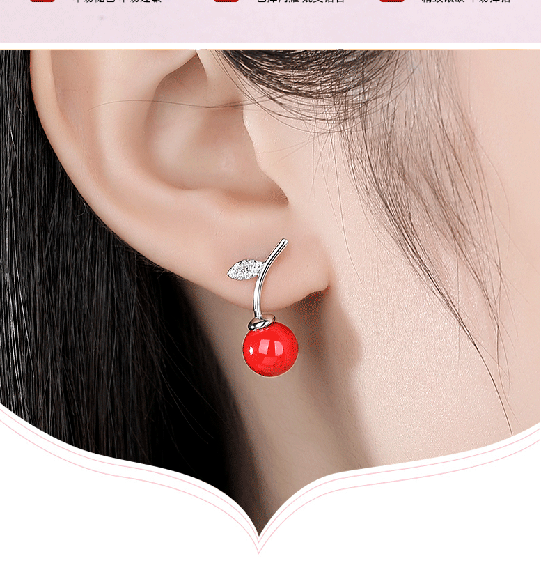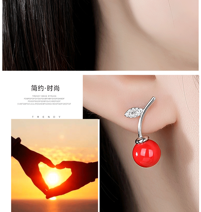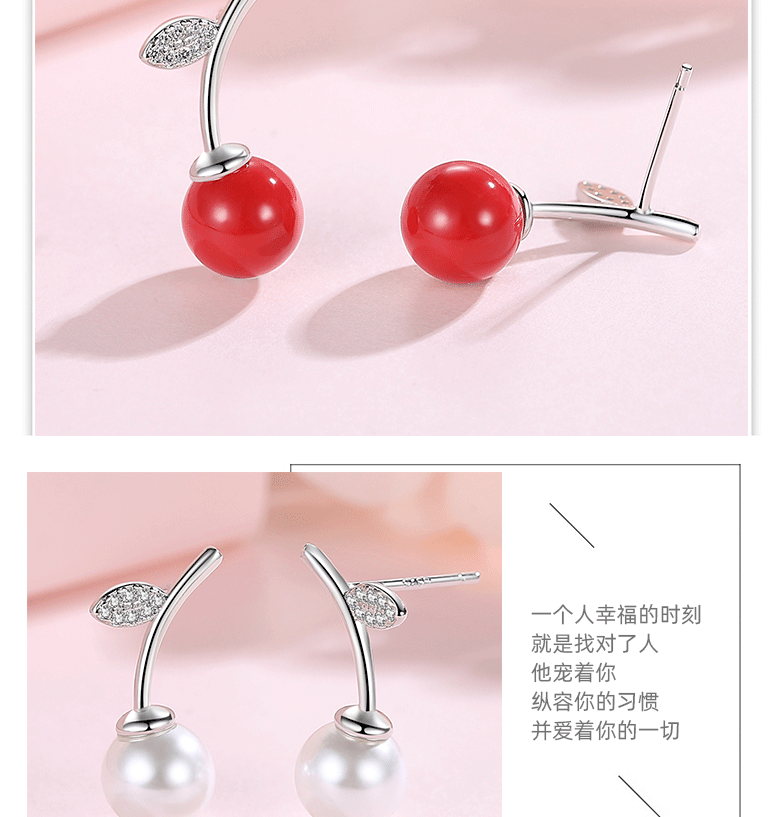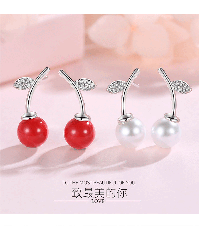 S925 pendientes de perlas de cerezo rojo de plata esterlina de las mujeres pendientes de Corea del Sur elegante celebridad de Internet nuevos pendientes de moda 2020