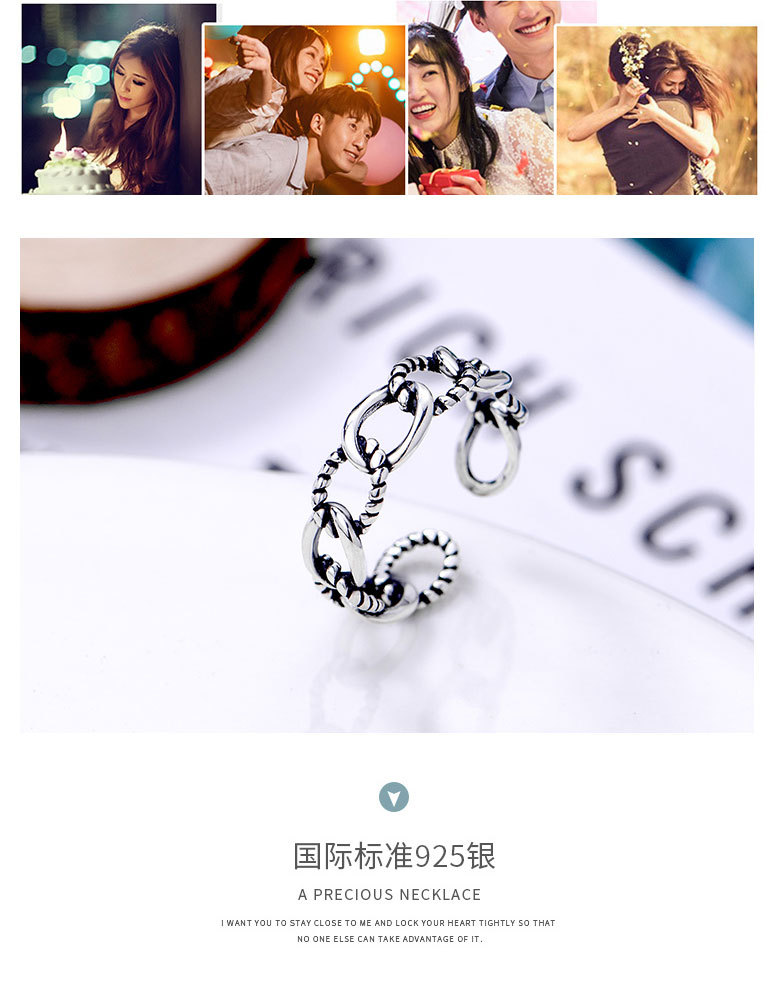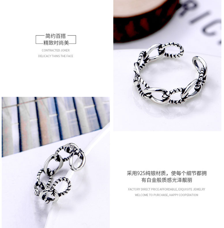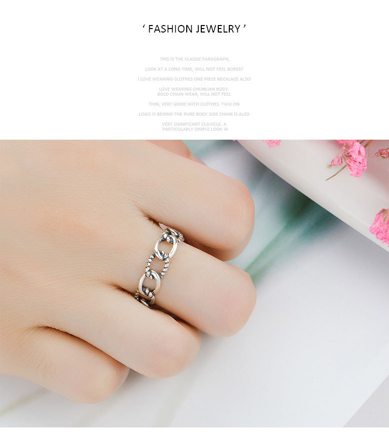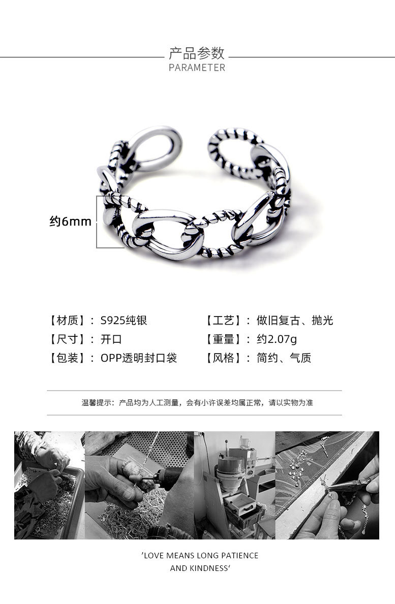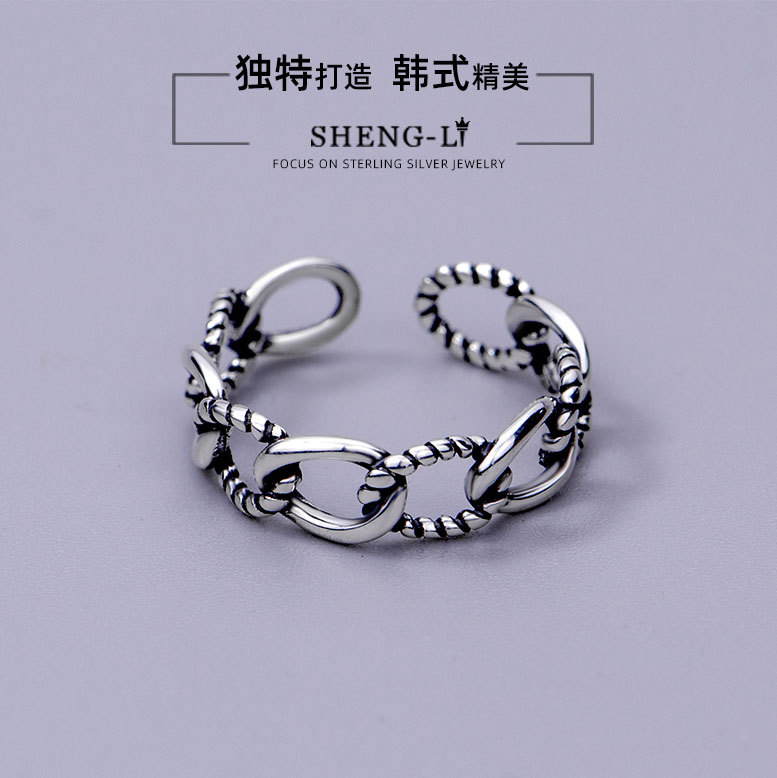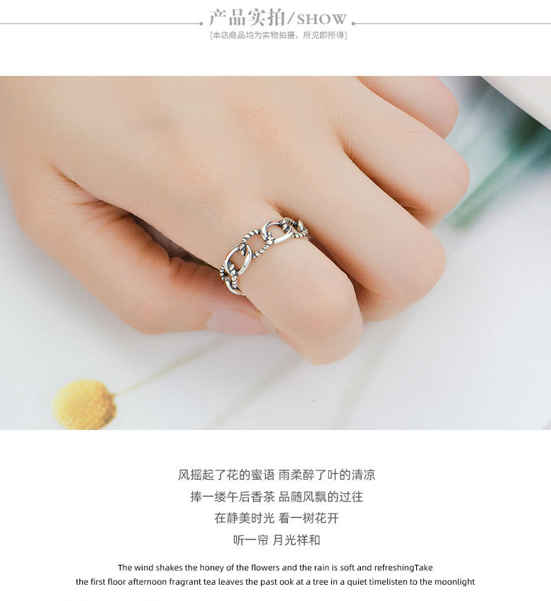 Anillo de cadena de plata s925 anillo femenino hebilla vintage plata tailandesa tejida giro anillo abierto estilo étnico moda