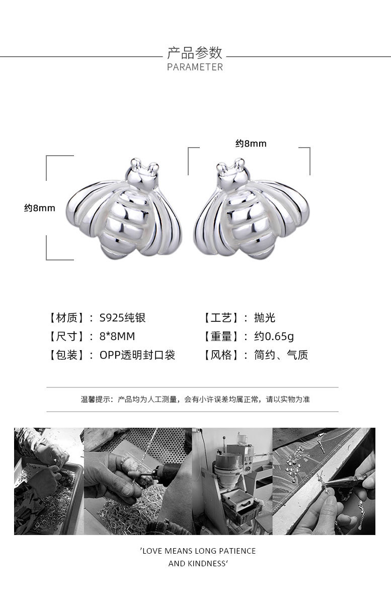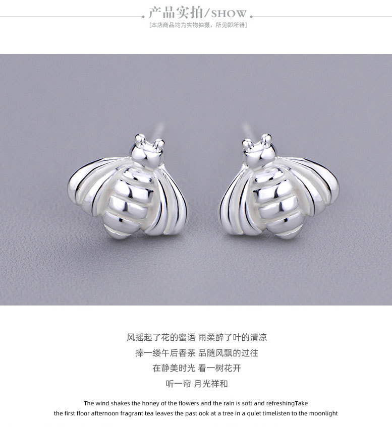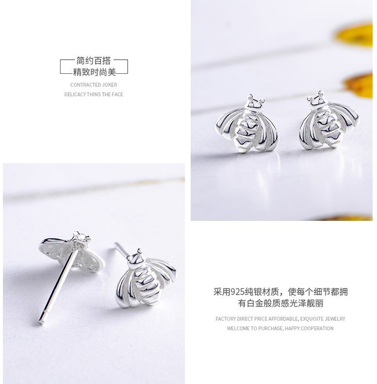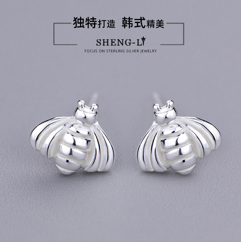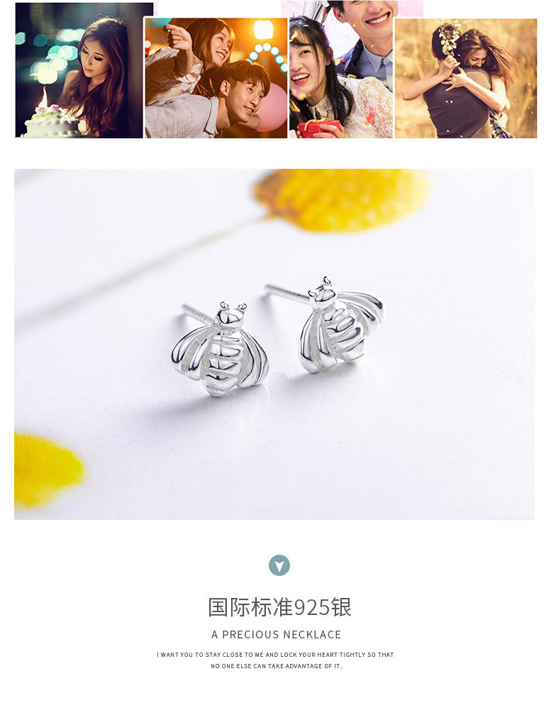 S925 plata esterlina nueva moda simple abeja Stud pendientes de las mujeres pequeño elegante Internet celebridad personalizada pendientes de estilo frío